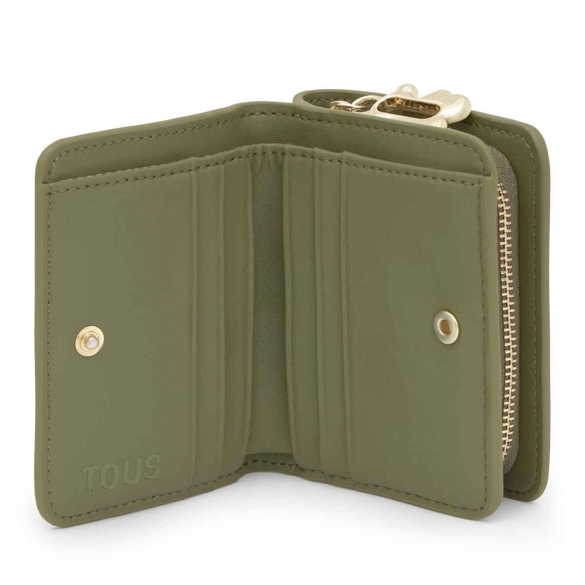Кошелёк TOUS из коллекции Fold оливкового цвета. Материал: натуральная кожа. Застежка - молния и отделение для монет на кнопке. Размеры (высота x ширина x глубина): 8 x 11 x 3 см.