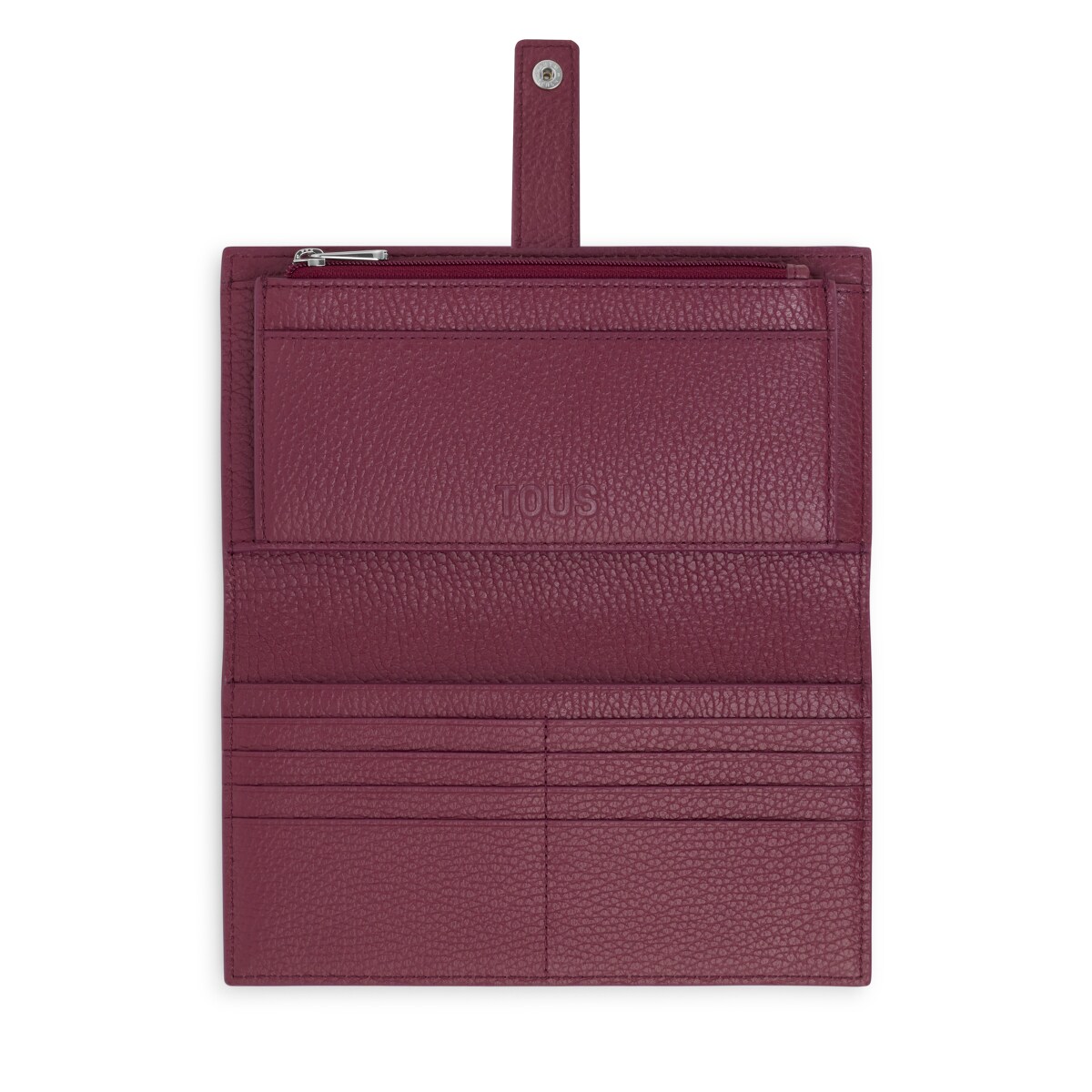 Кошелек TOUS из коллекции Miranda бордового цвета. Материал: натуральная кожа. Застежка на кнопки. Открытый внешний карман. Внутри имеется карман для монет на молнии, восемь отделений для карт и четыре открытых отделения для купюр. Размеры (высота х ширина х глубина): 10,7 х 19,5 х 1,6 см.