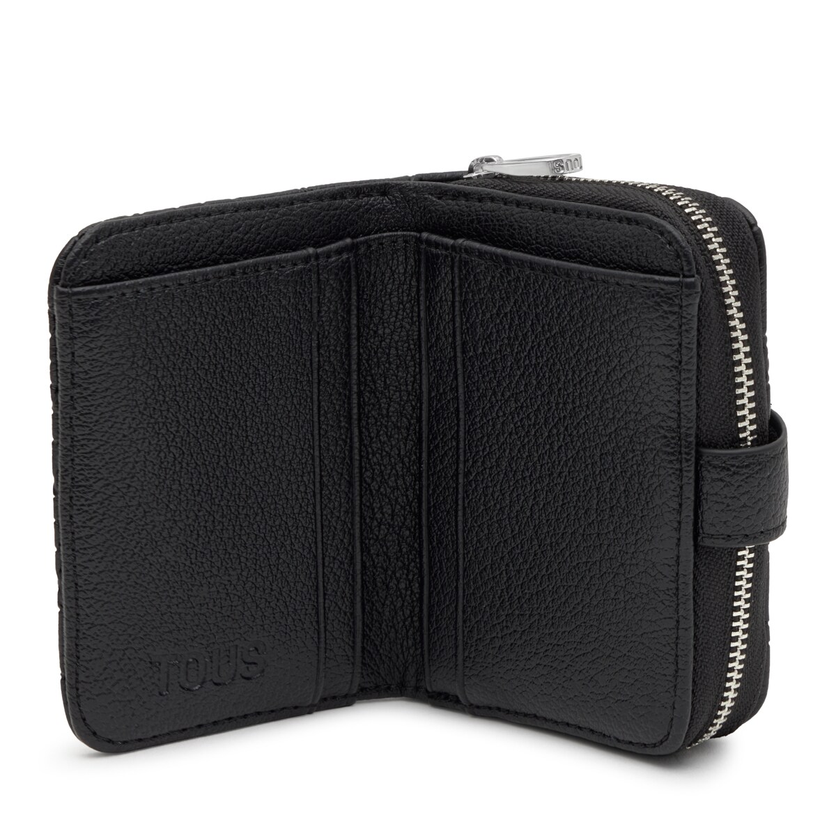 Кошелек TOUSиз коллекции Пухлый Мишка (Puffy Bear) из искусственной кожи черного цвета. Материал: полиуретан. Застежка-молния. Внутри три открытых отделения для монет и два слота для карт. Размеры (высота х ширина х глубина): 8 х 10,5 х 4 см.