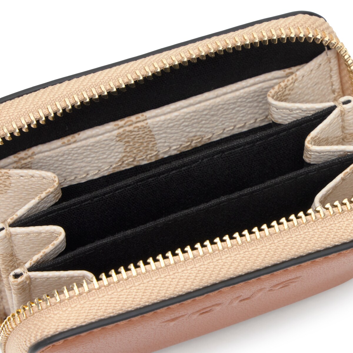 Кошелек TOUS из коллекции Каос Айкон (Kaos Icon) из полиуретана коричневого и бежевого цвета. Застежка-молния. Внутри три открытых отделения для монет или банкнот и два слота для карт. Размеры (высота x ширина x глубина): 8 x 10 x 2,3 см.