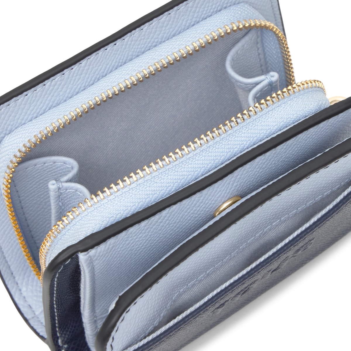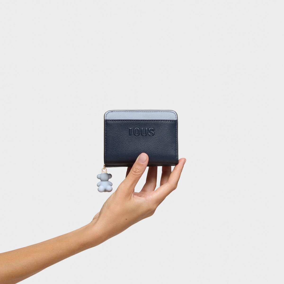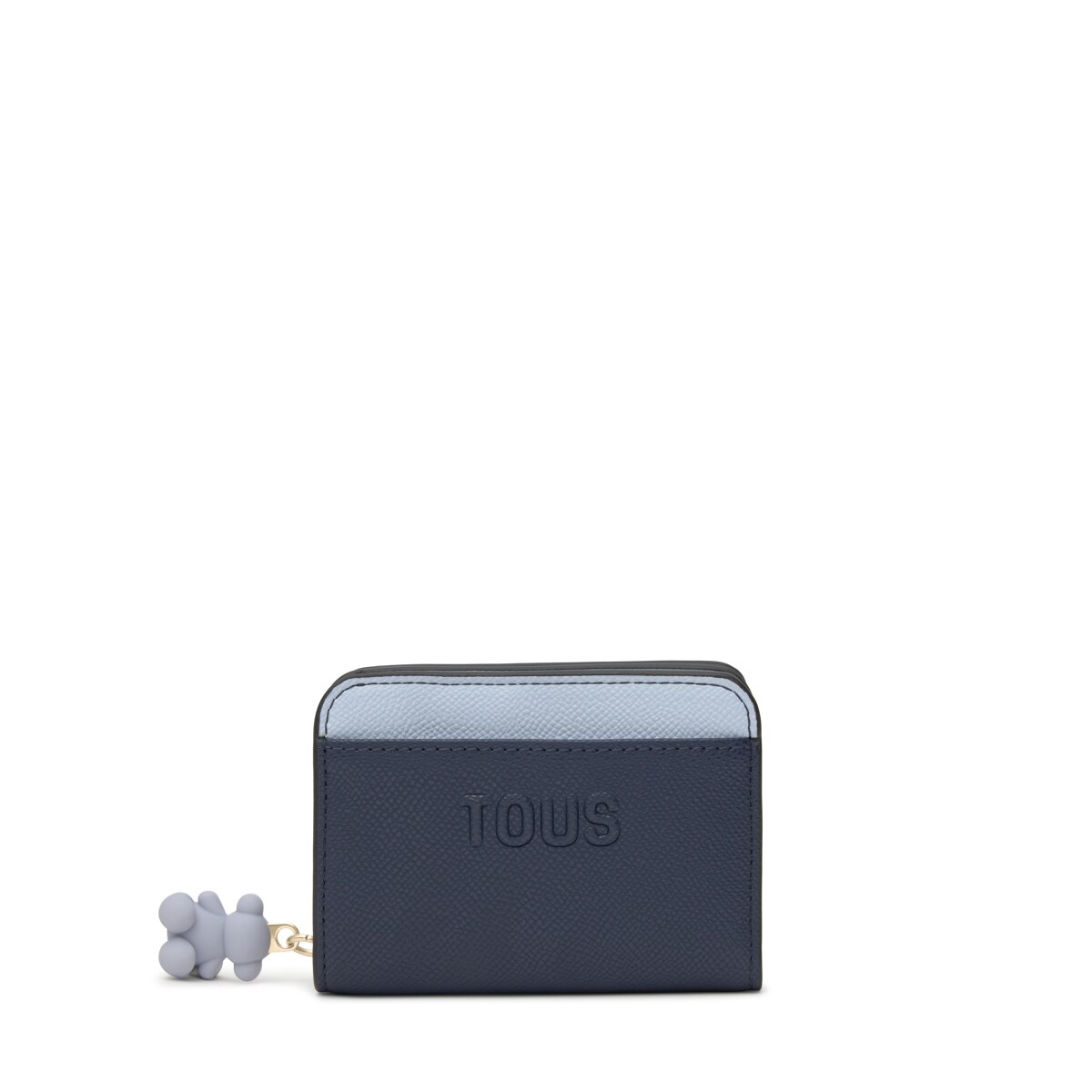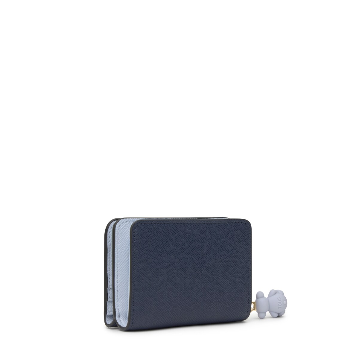 Кошелек TOUS из коллекции Добл Одри Саффиано (Doble Audree Saffiano) из полиуретана темносинего и голубого цвета. Застежка на кнопку и молнию. Два основных отделения: одно на молнии, другое для карт. Размеры: 8,5 x 11 x 5,5 см.