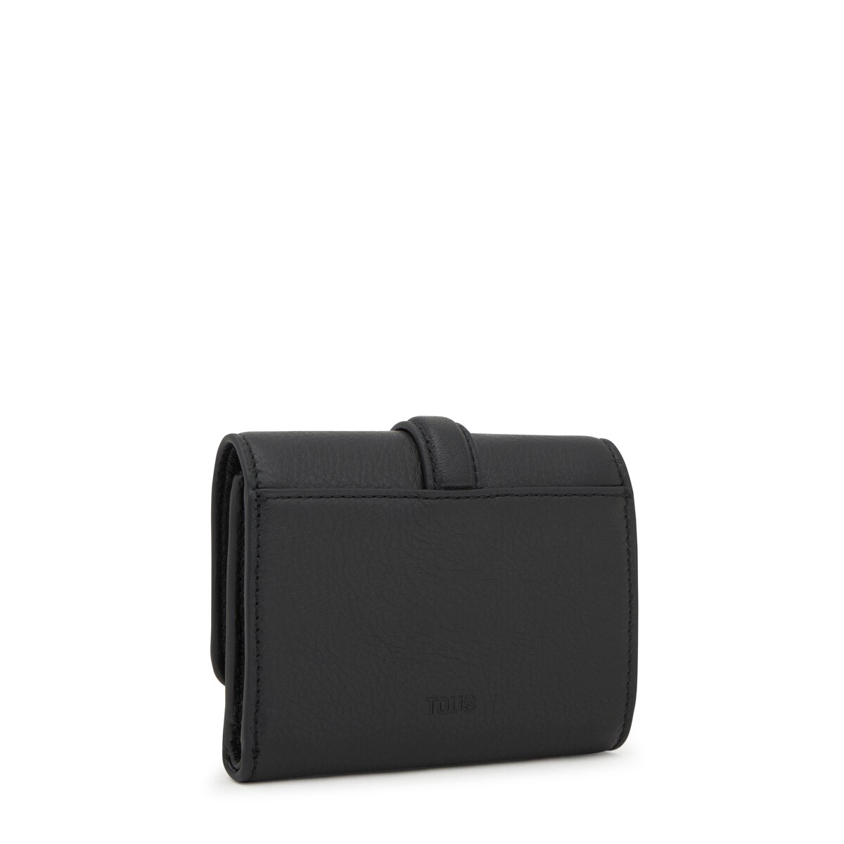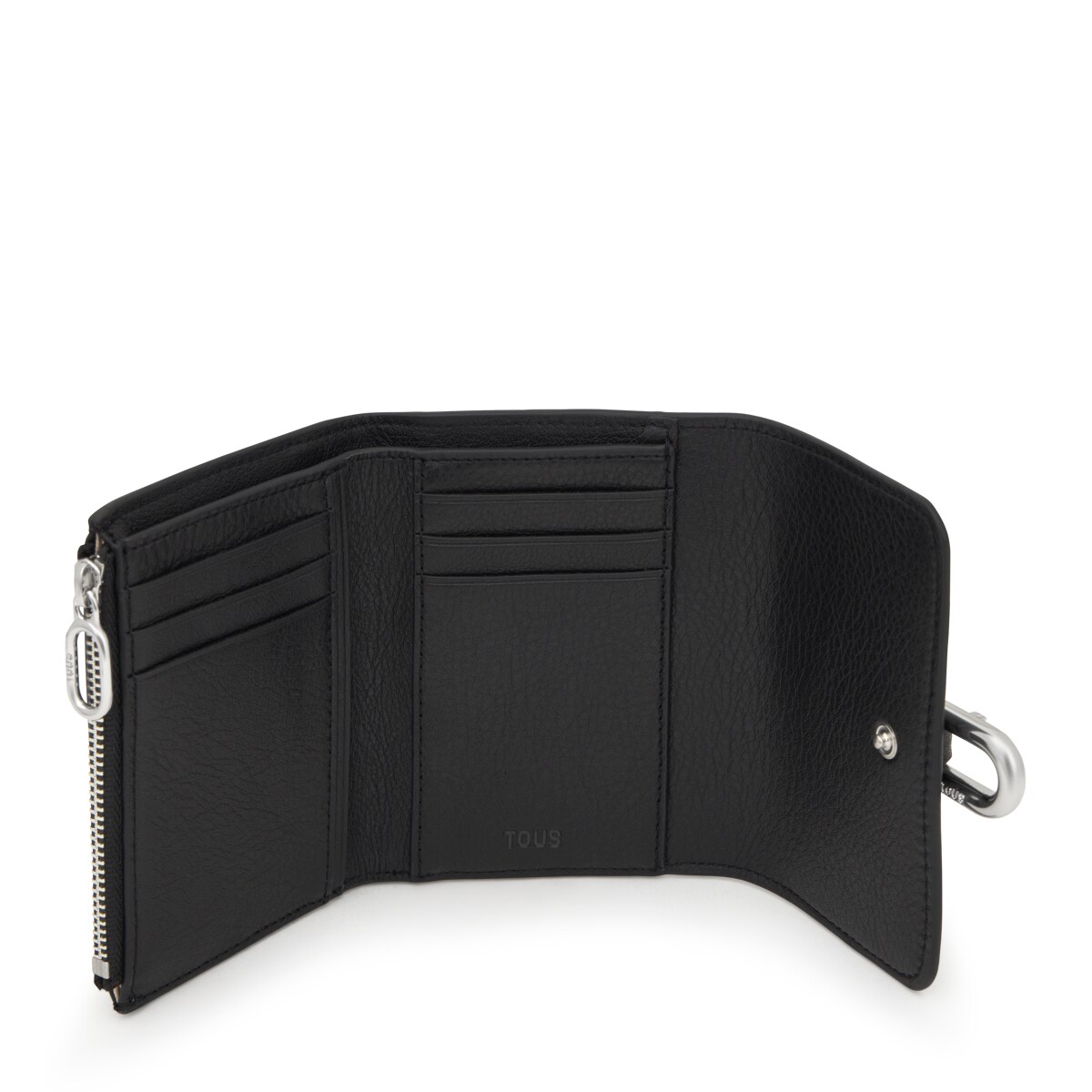 Кошелёк TOUS из коллекции Hold черного цвета. Материал: натуральная кожа. Застёжка на кнопку. Внутри отделение для купюр, восемь слотов для карт и отделение для монет на молнии. Размеры (высота x ширина x глубина): 10 x 12 x 2,5 см.