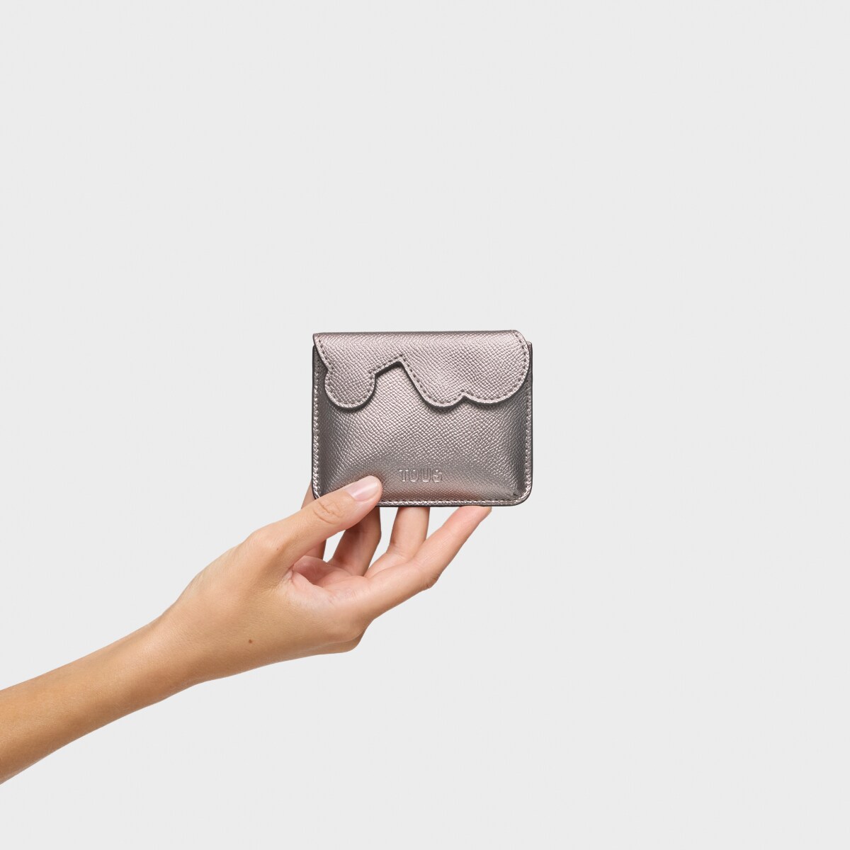 Монетница-картхолдер TOUS из коллекции Bear Anniversary из искуственной кожи серебристого цвета. Материал: полиуретан. Специальное отделение для монет. Застегивается на две магнитные кнопки. Размеры (высота х ширина х глубина): 8 x 10,5 x 1 см.