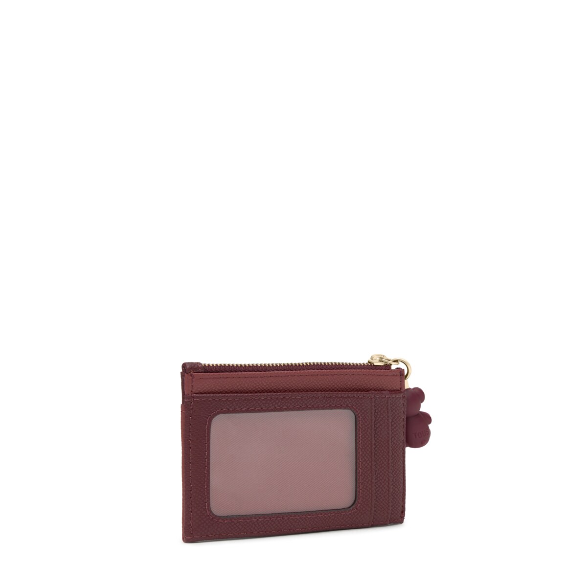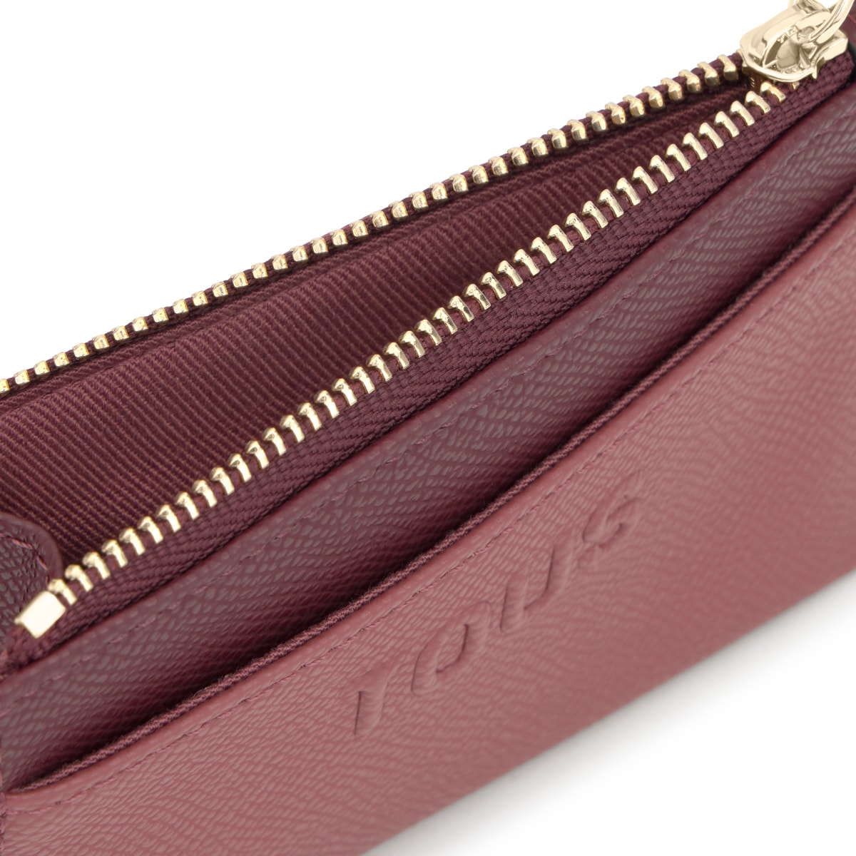 Монетница-картхолдер TOUS из коллекции Одри Саффиано (Audree Saffiano) из полиуретана бордового цвета. Имеется отделение для монет, закрывающееся на молнию.На задней стороне три слота для карт, один из которых прозрачный. Размеры (высота x ширина x глубина): 8 x 11,5 x 2 см.
