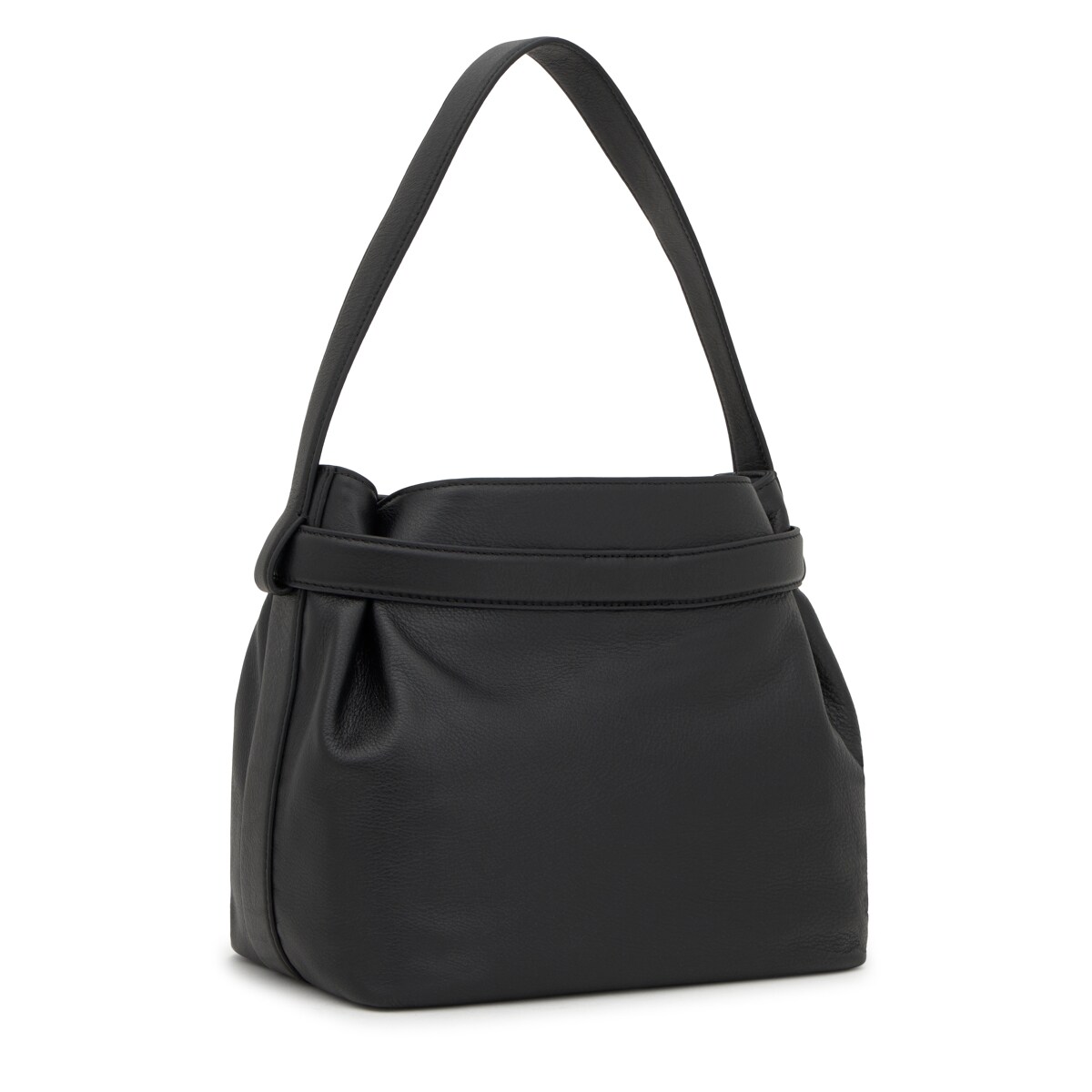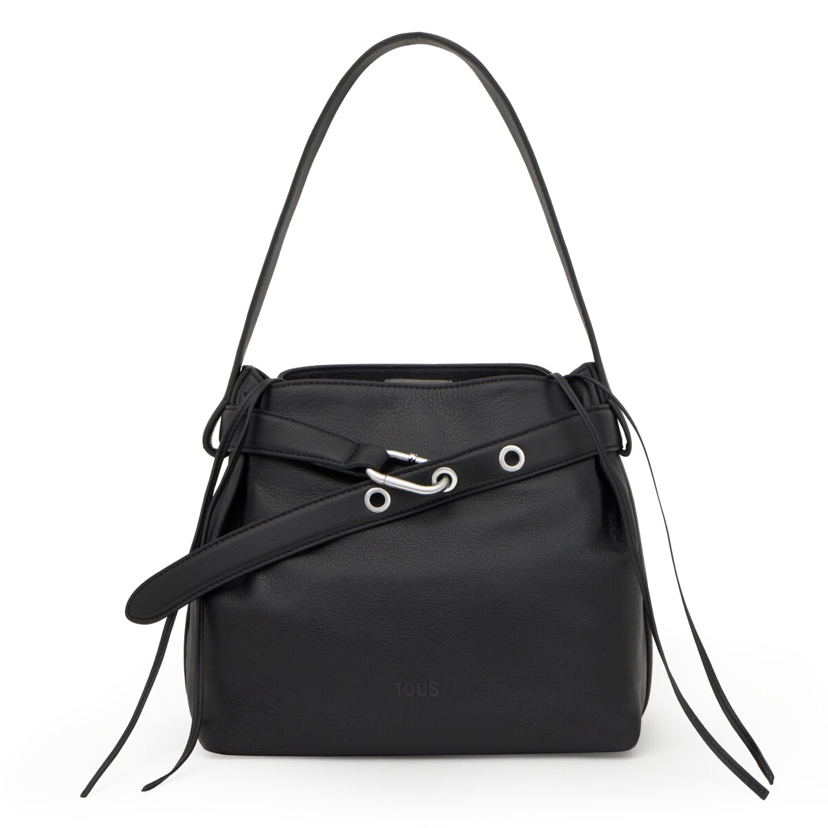 Сумка TOUS из коллекции Hold из натуральной кожи черного цвета. Материал: натуральная кожа. Застегивается на магнитную кнопку. Сумка с двумя отделениями, разделёнными карманом на молнии. Внутренний карман с молнией. Фиксированный плечевой ремень. Размеры (высота x ширина x глубина): 22 x 30 x 18 см.