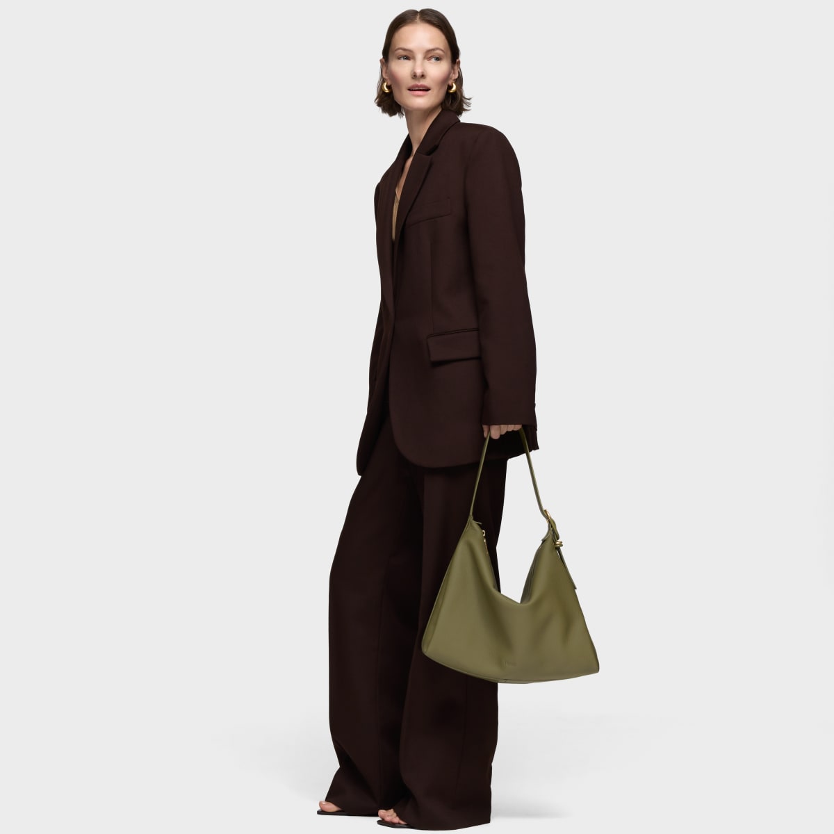 Сумка-хобо TOUS Fold из оливково-зеленой кожи. Материал: натуральная кожа. Застежка-молния. Внутренний карман на молнии. Регулируемый плечевой ремень. Размеры (высота x ширина x глубина): 30 x 39 x 20 см.