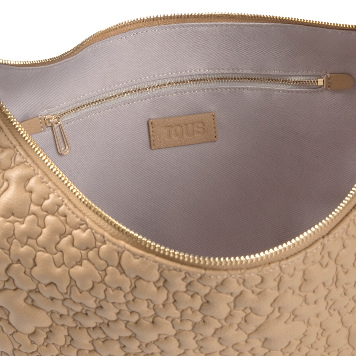 Сумка-хобо TOUS из коллекции Пухлый Мишка (Puffy Bear) из искусственной кожи песочного цвета. Материал: полиуретан. Застежка-молния. Внутренний карман на молнии. Регулируемый плечевой ремень. Размеры (высота х ширина х глубина): 34 х 41 х 12,5 см.