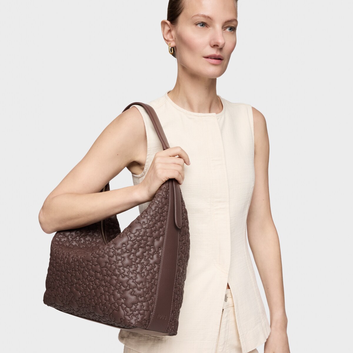 Сумка-хобо TOUS из коллекции Пухлый Мишка (Puffy Bear) из искусственной кожи коричневого цвета. Материал: полиуретан. Застежка-молния. Внутренний карман на молнии. Регулируемый плечевой ремень. Размеры (высота х ширина х глубина): 34 х 41 х 12,5 см.
