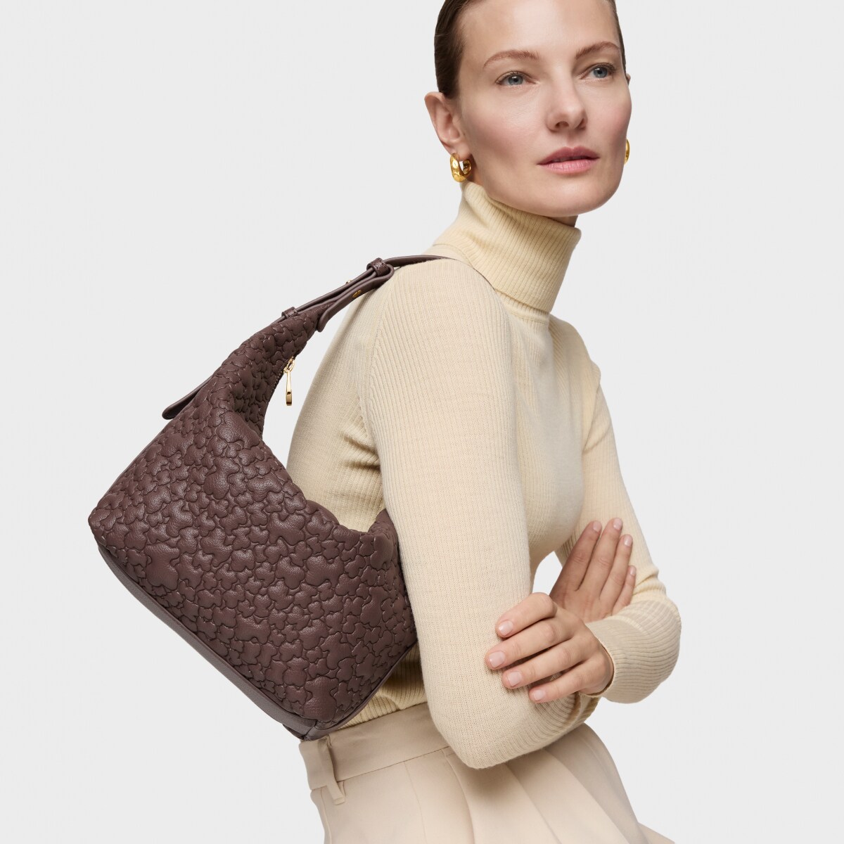 Сумка-хобо TOUS из коллекции Пухлый Мишка (Puffy Bear) из искусственной кожи коричневого цвета. Материал: полиуретан. Застежка-молния. Внутренний карман на молнии. Регулируемый плечевой ремень. Размеры (высота х ширина х глубина): 24 х 32 х 12 см.