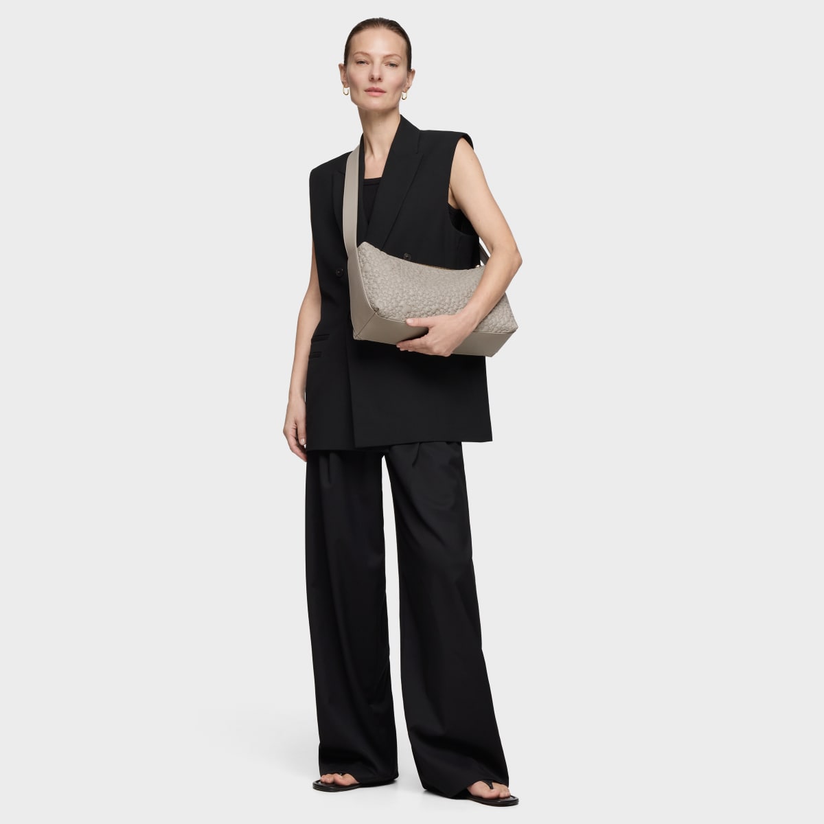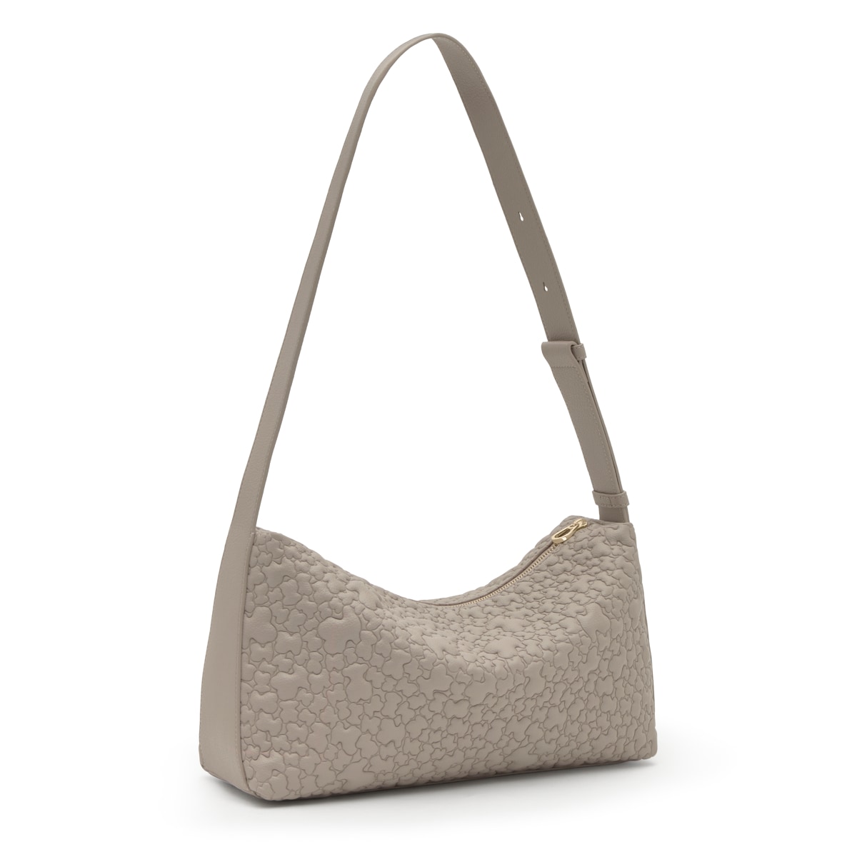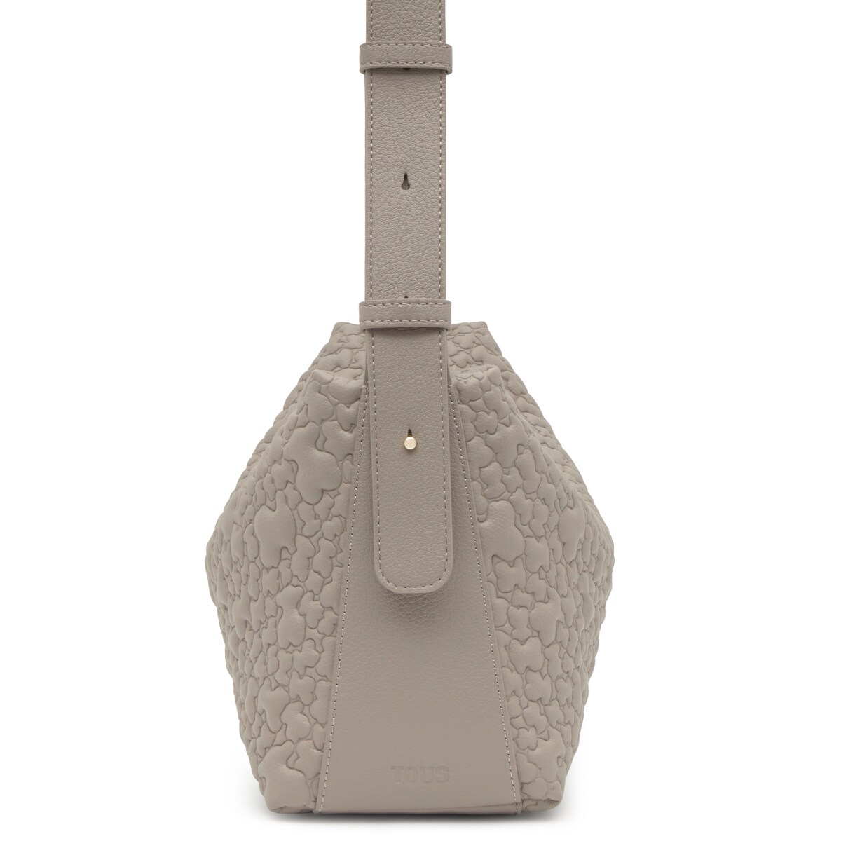 Сумка-хобо TOUS из коллекции Пухлый Мишка (Puffy Bear) из искусственной кожи серо-бежевого цвета. Материал: полиуретан. Застежка-молния. Внутренний карман на молнии. Регулируемый плечевой ремень. Размеры (высота х ширина х глубина): 21 х 38 х 13 см.