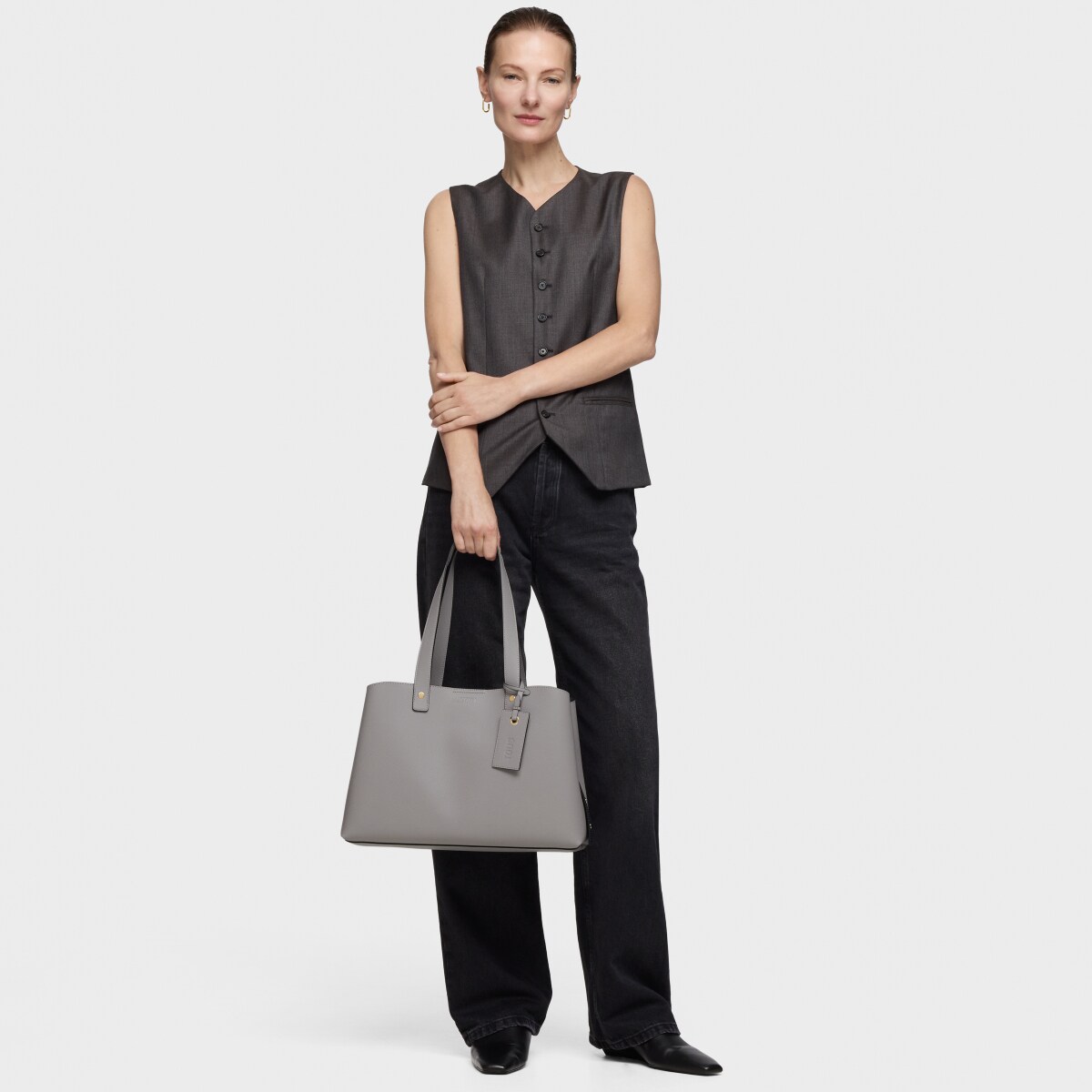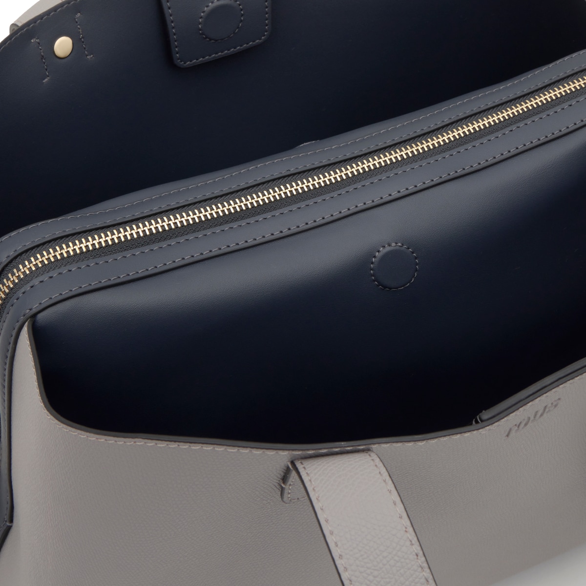 Сумка-тоут TOUS из коллекции Citybow среднего размера серого цвета из искуственной кожи. Материал: полиуретан. Застежка на магнитную кнопку. Внутренний карман на молнии. Фиксированный плечевой ремень. Размеры (высота x ширина x глубина): 19 x 39 x 24 см.