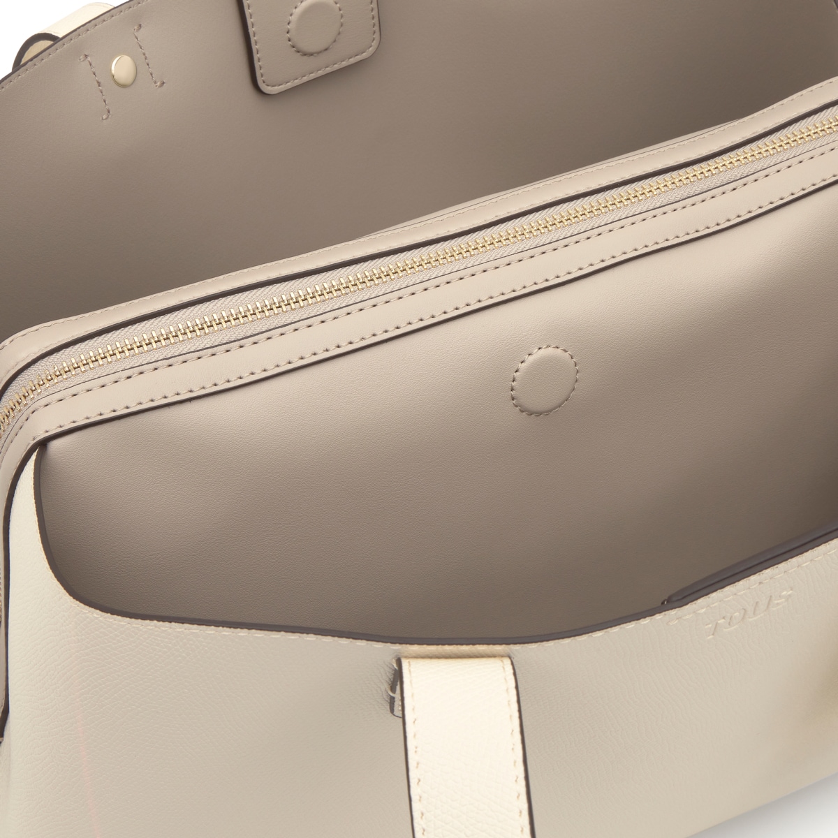 Сумка-тоут TOUS из коллекции Городской Лук (Citybow) из искусственной кожи бежевого цвета. Материал: полиуретан. Застегивается на магнитную кнопку. Внутренний карман на молнии. Фиксированный плечевой ремень. Размеры (высота х ширина х глубина): 19 х 39 х 24 см.