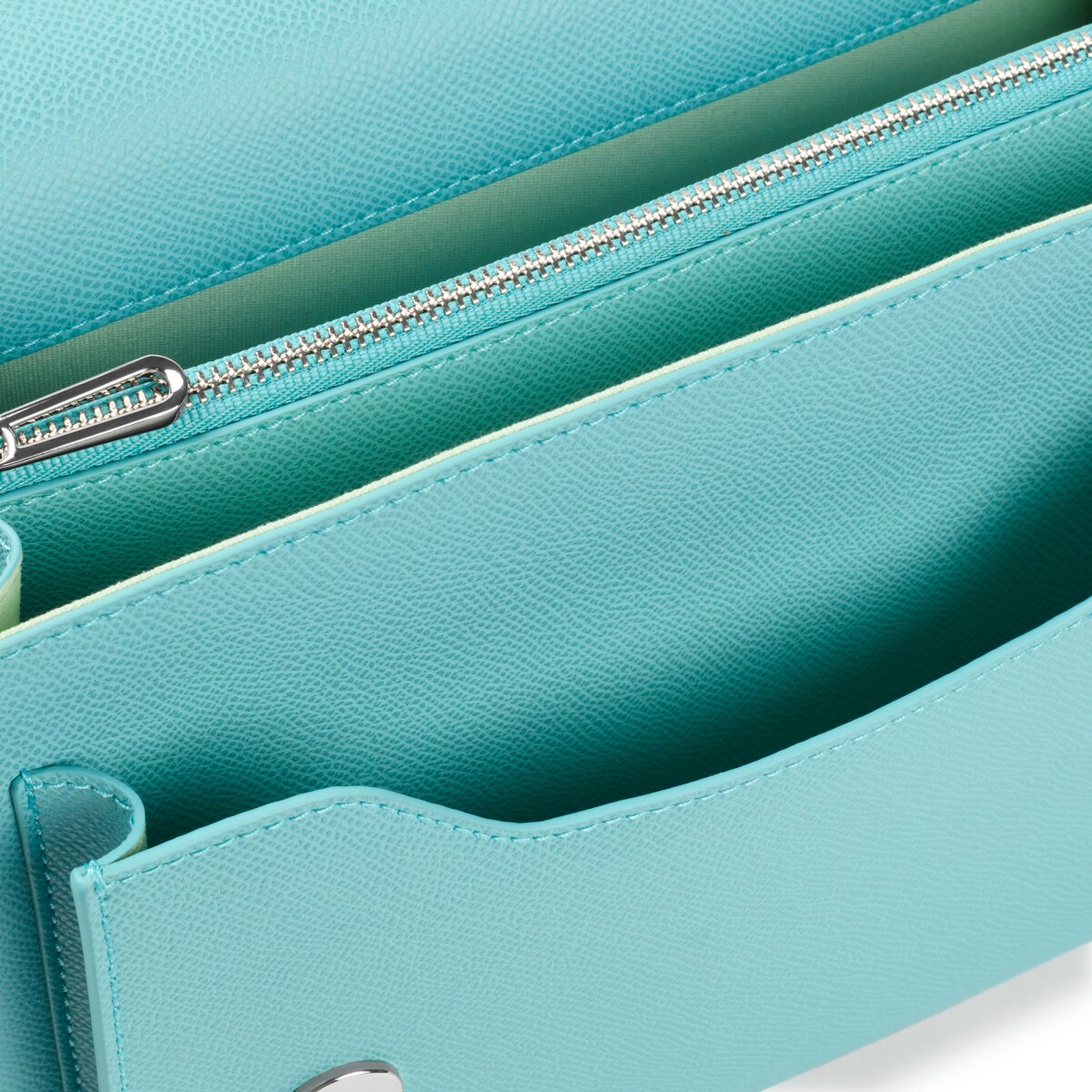 Сумка через плечо TOUS из коллекции La Rue New Audree бирюзового цвета.Материал: полиуретан. Имеет клапан и застежку на две магнитные кнопки. Имеет два отделения, разделенные одним отделением на молнии, и открытый карман спереди. Фиксированный плечевой ремень и съемный регулируемый ремень через плечо. Размеры (высота x ширина x глубина): 18 x 25 x 12,5 см.