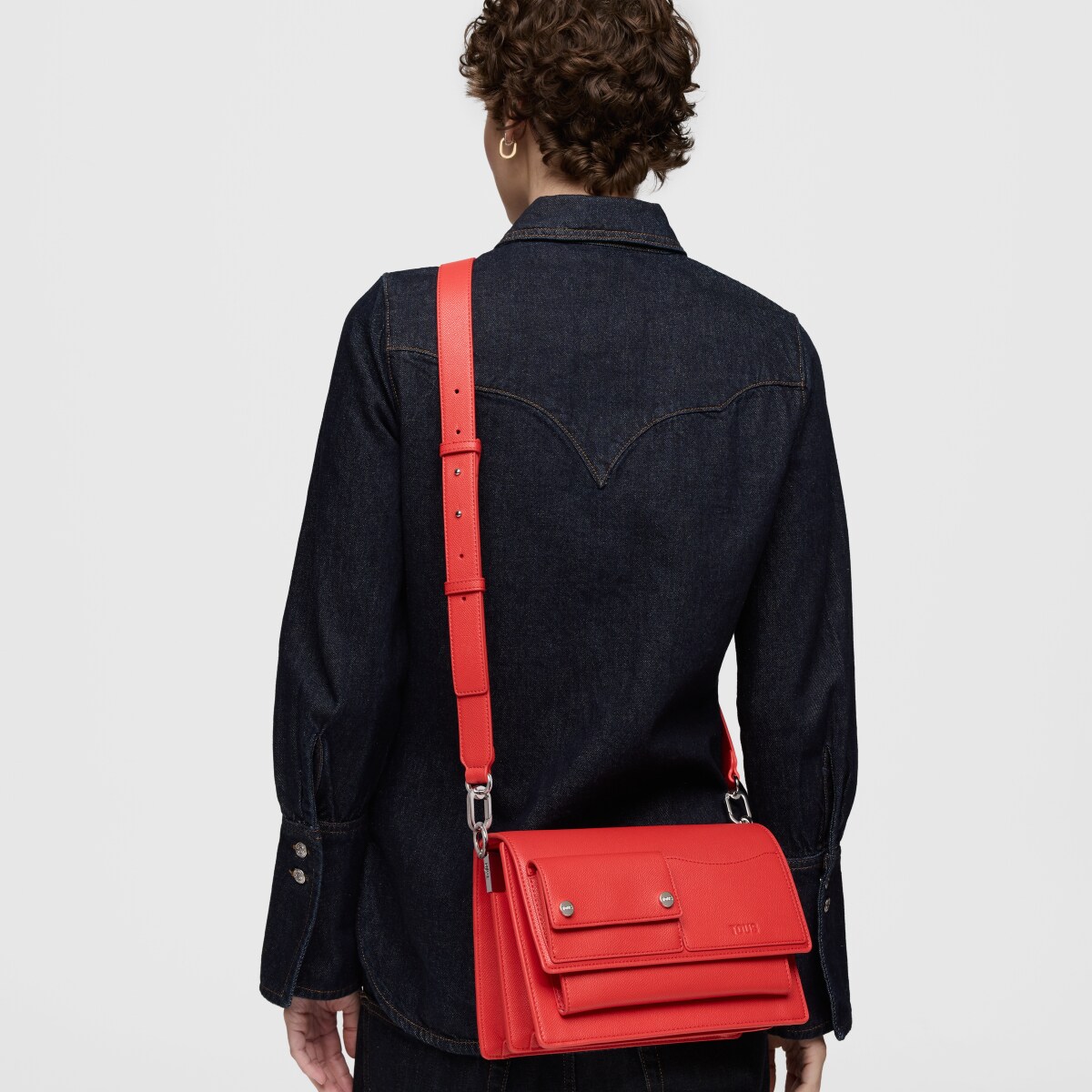 Сумка через плечо TOUS из коллекции Одри Покетс (Audree Pockets) среднего размера из полиуретана красного цвета. Имеет клапан и застежку на двух магнитных кнопках. Два отделения, разделенные одним отделением на молнии, спереди открытый карман для карт и небольшой карман на кнопках. Фиксированный плечевой ремень и регулируемый съемный ремень для ношения через плечо. Размеры (высота x ширина x глубина): 19 x 25 x 12 см.