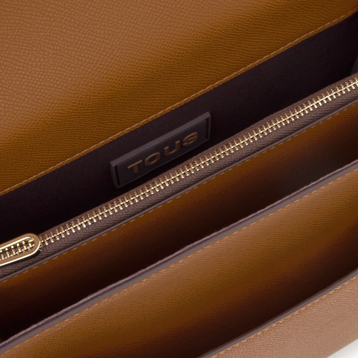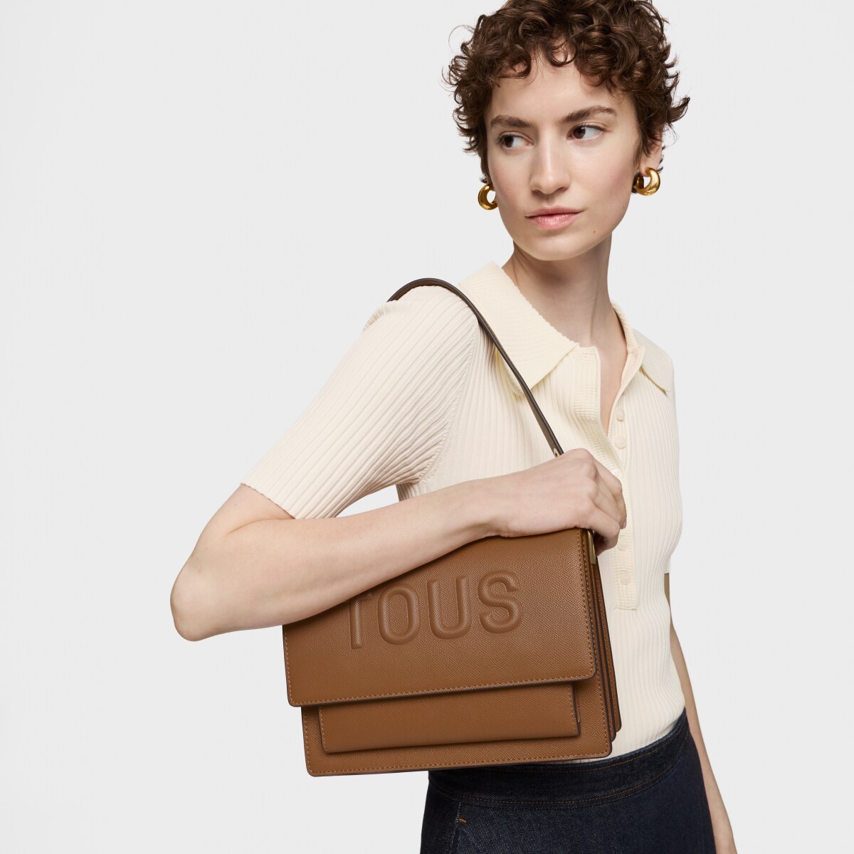 Средняя сумка через плечо TOUS из коллекции Brenda Audree коричневого цвета. Материал: полиуретан. Застежка клапан с двумя магнитными кнопками. Два отделения, разделенных одним на молнию, и открытый карман спереди. Фиксированный плечевой ремень и регулируемый и съемный плечевой ремень. Размеры (высота х ширина х глубина): 19 х 25 х 11,5 см.
