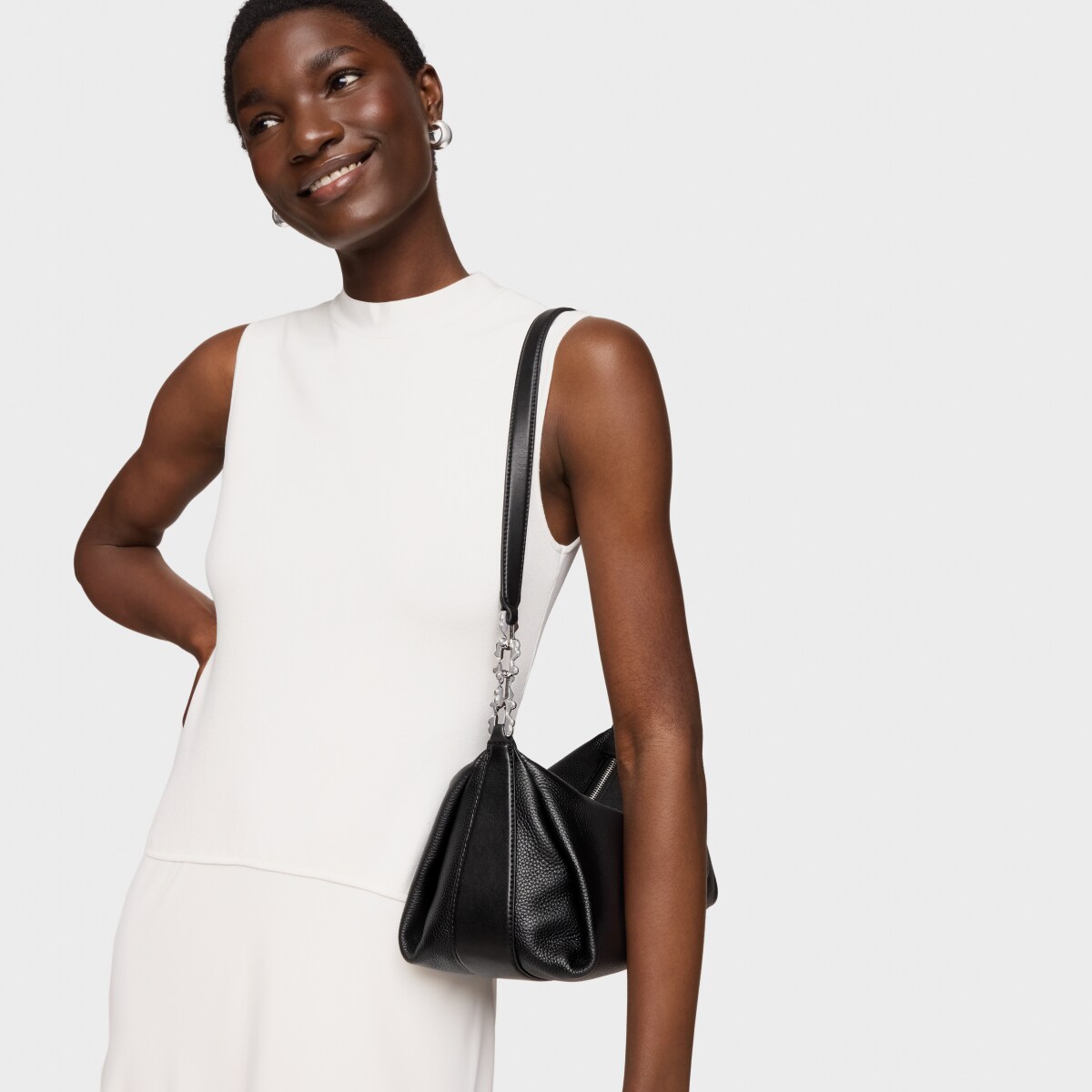 Сумка через плечо TOUS из коллекции Fold среднего размера с цепочкой, изготовлена из черной натуральной кожи. Материал: натуральная кожа. Застежка-молния. Внутренний карман на молнии. Регулируемый плечевой ремень. Размеры (высота x ширина x глубина): 18 x 34 x 15 см.