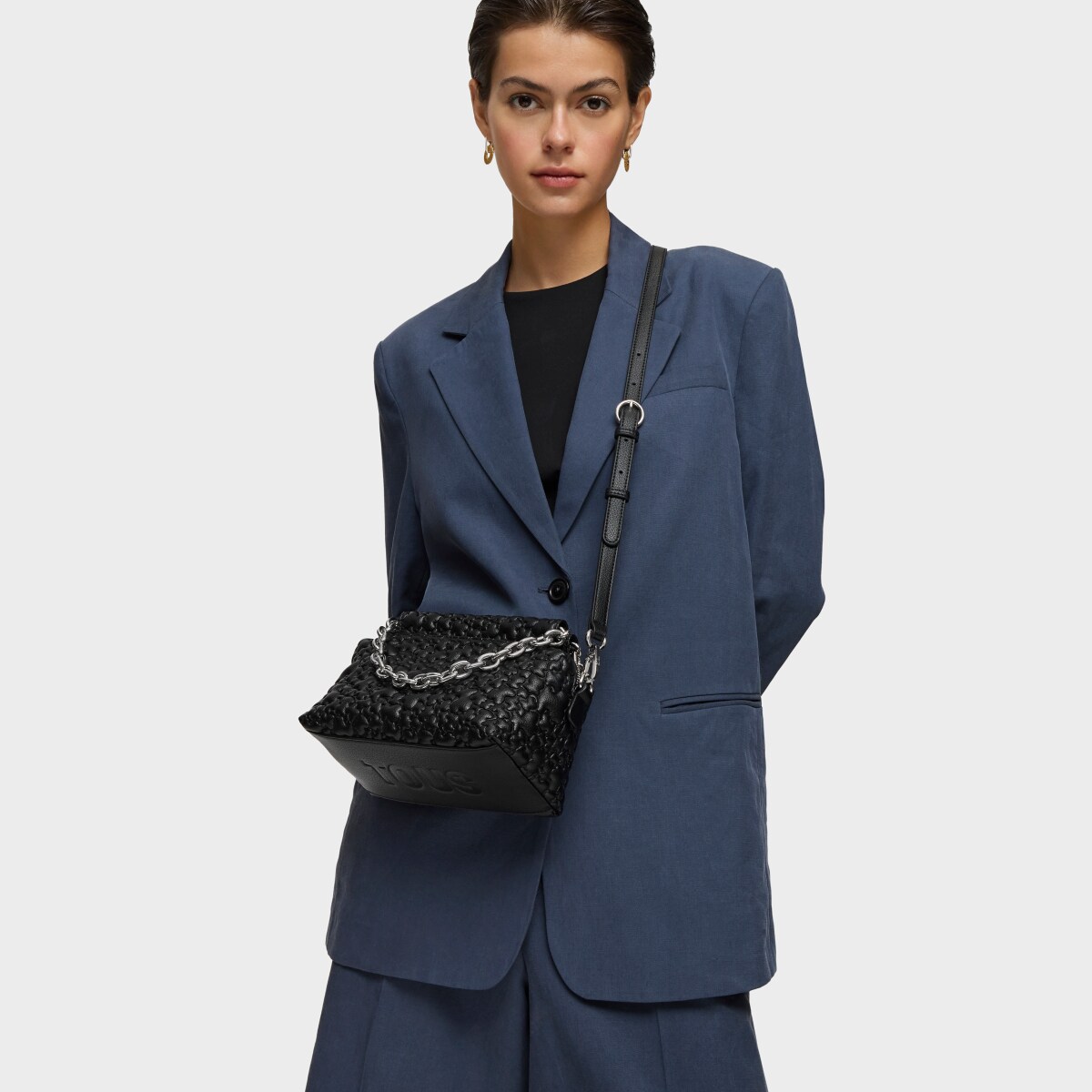 Сумка через плечо TOUS из коллекции Jane Puffy Bear из искуственной кожи черного цвета. Материал: полиуретан. Застежка-молния. Фиксированные ручки и регулируемый съемный ремень через плечо. Размеры (высота х ширина х глубина): 17 х 25 х 12 см.