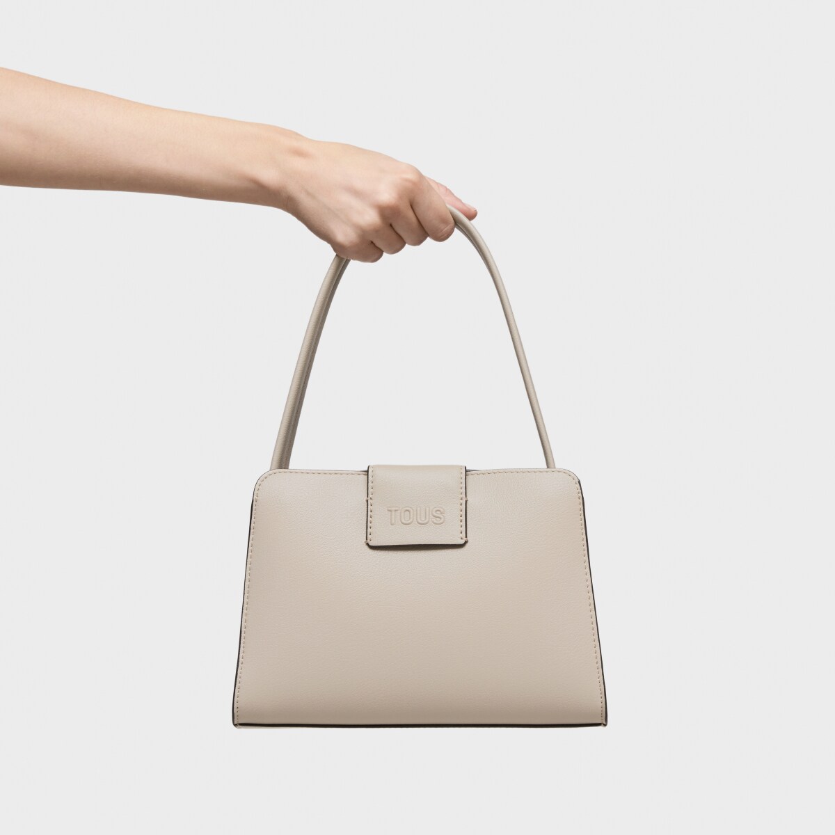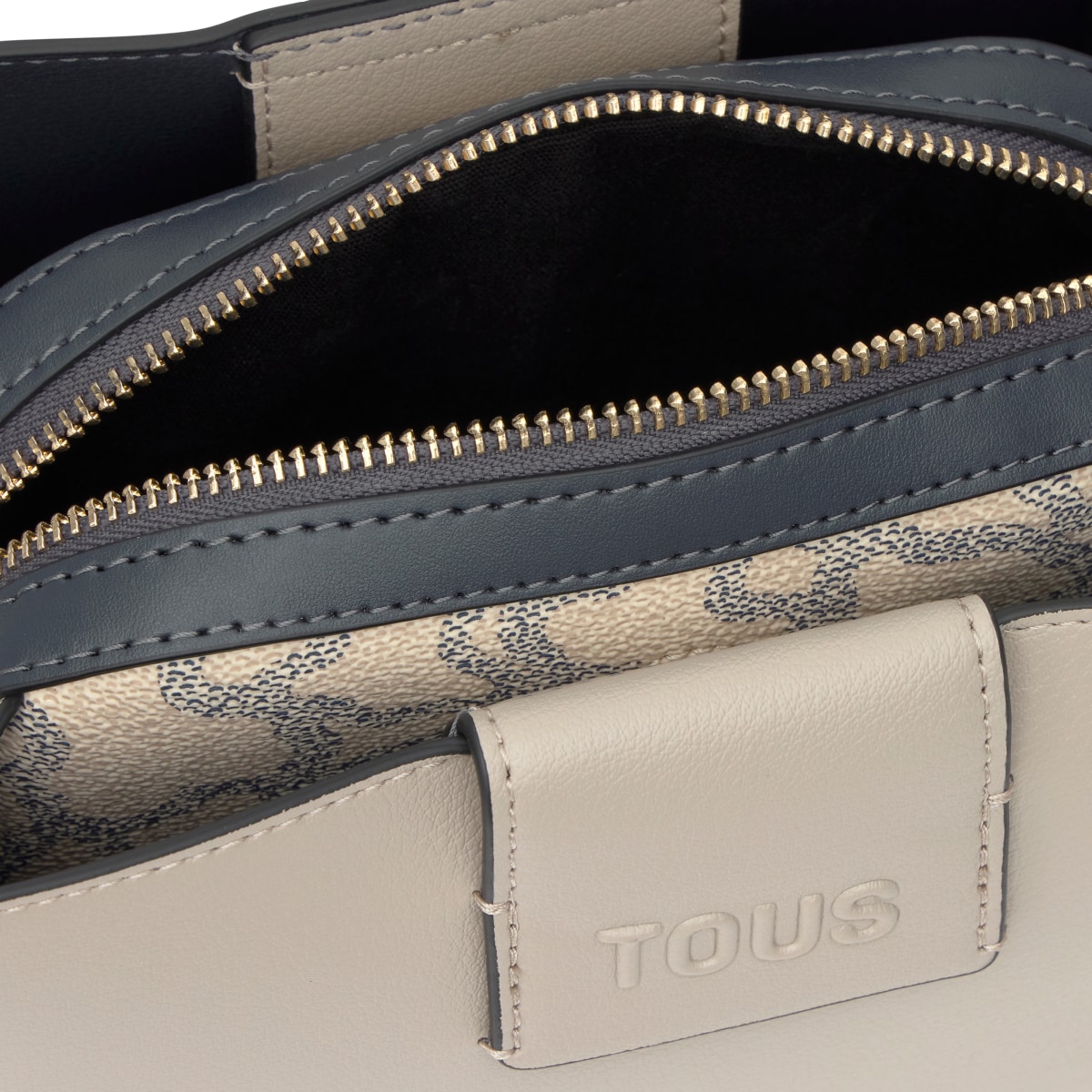 Сумка через плечо TOUS из коллекции Каос Айкон (Kaos Icon) из полиуретана цвета тауп и темно-серого цвета. Застежка на магнитную кнопку. Внутренний карман на молнии. Фиксированный плечевой ремень. Размеры (высота x ширина x глубина): 11 x 23 x 16 см.