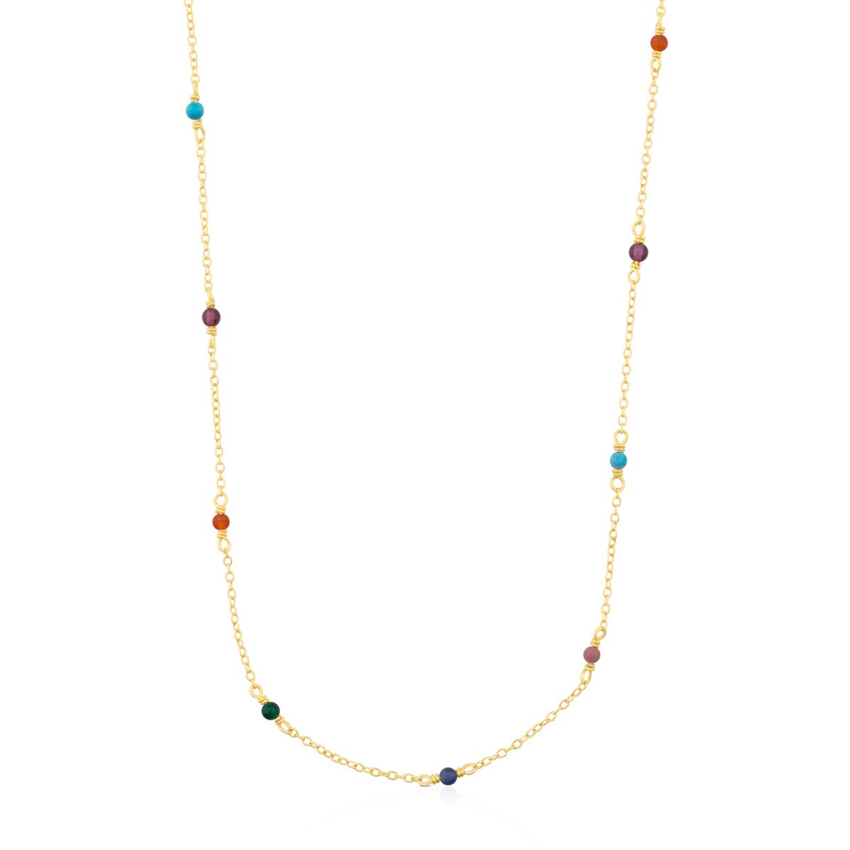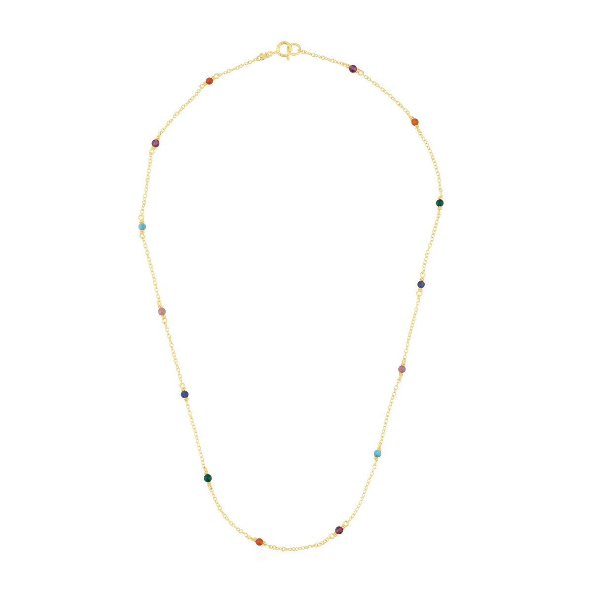 Колье TOUS Super Power, серебро с покрытием Vermeil, с родонитом, содалитом, зеленым кварцем, апельсиновым кварцем, гранатом и магнезитом. Длина: 40 см. Vermeil: серебро, покрытое слоем 18kt желтого золота.