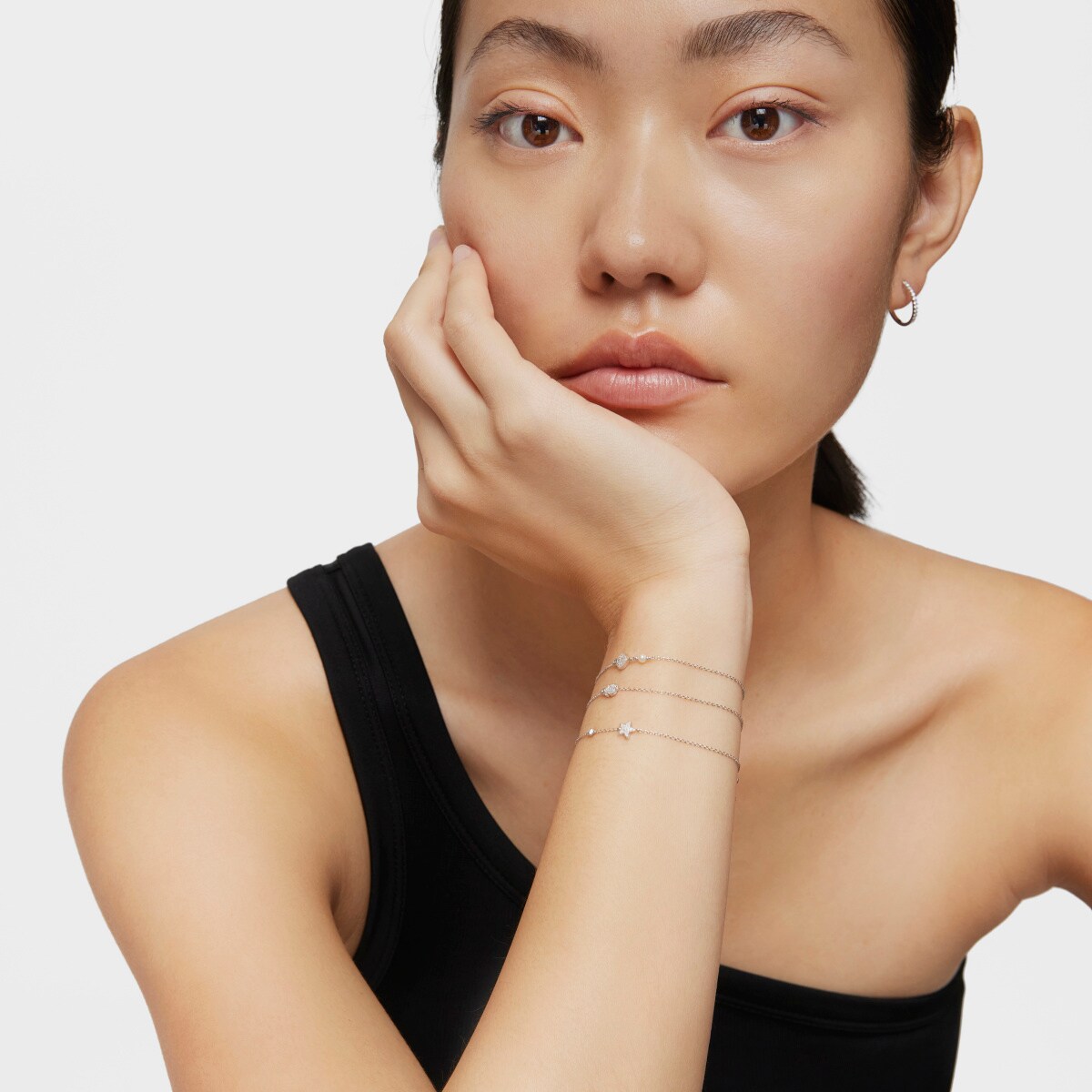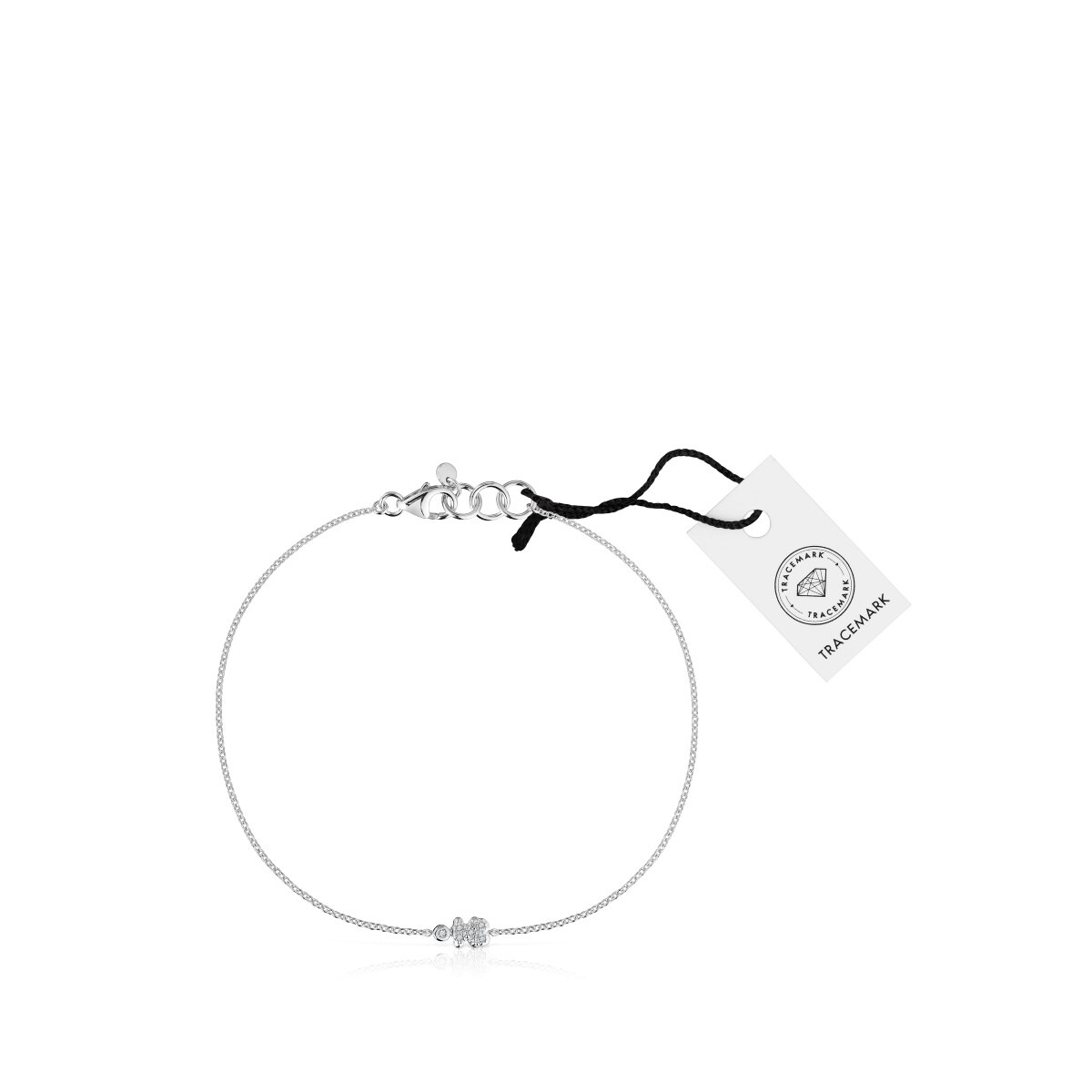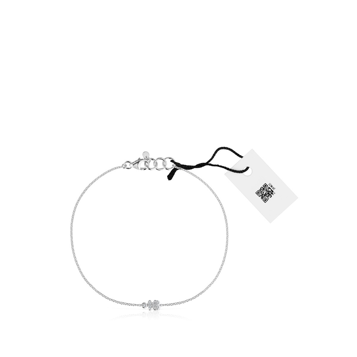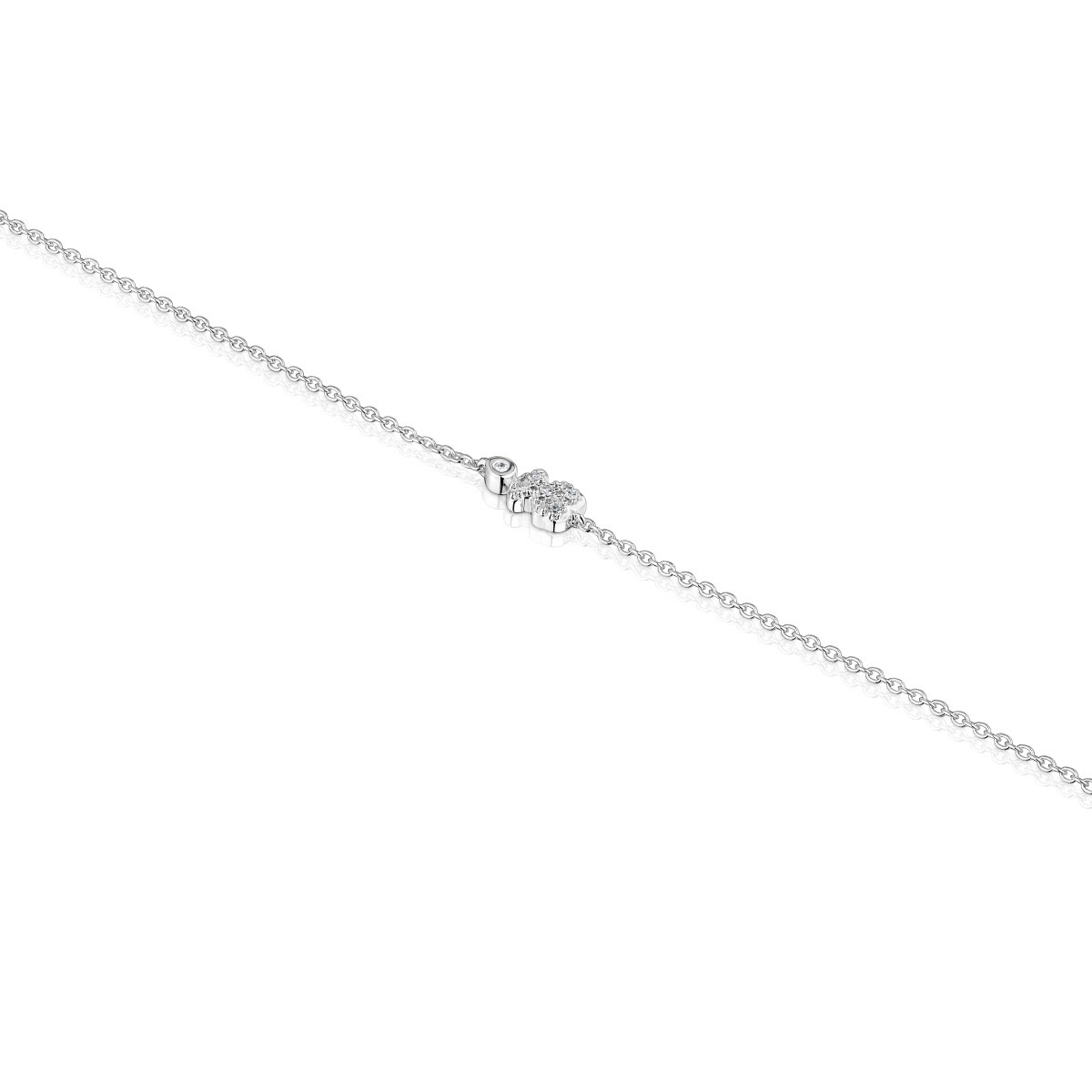 Золотой браслет TOUS из коллекции Grain с медвежонком и бриллиантами. Материал: белое золото 750 пробы. Размер медвежонка: 4,6 мм. Вставка: 6 бриллиантов 0,016кт. Качество бриллиантов: H/SI. Длина браслета: 17,5 см.