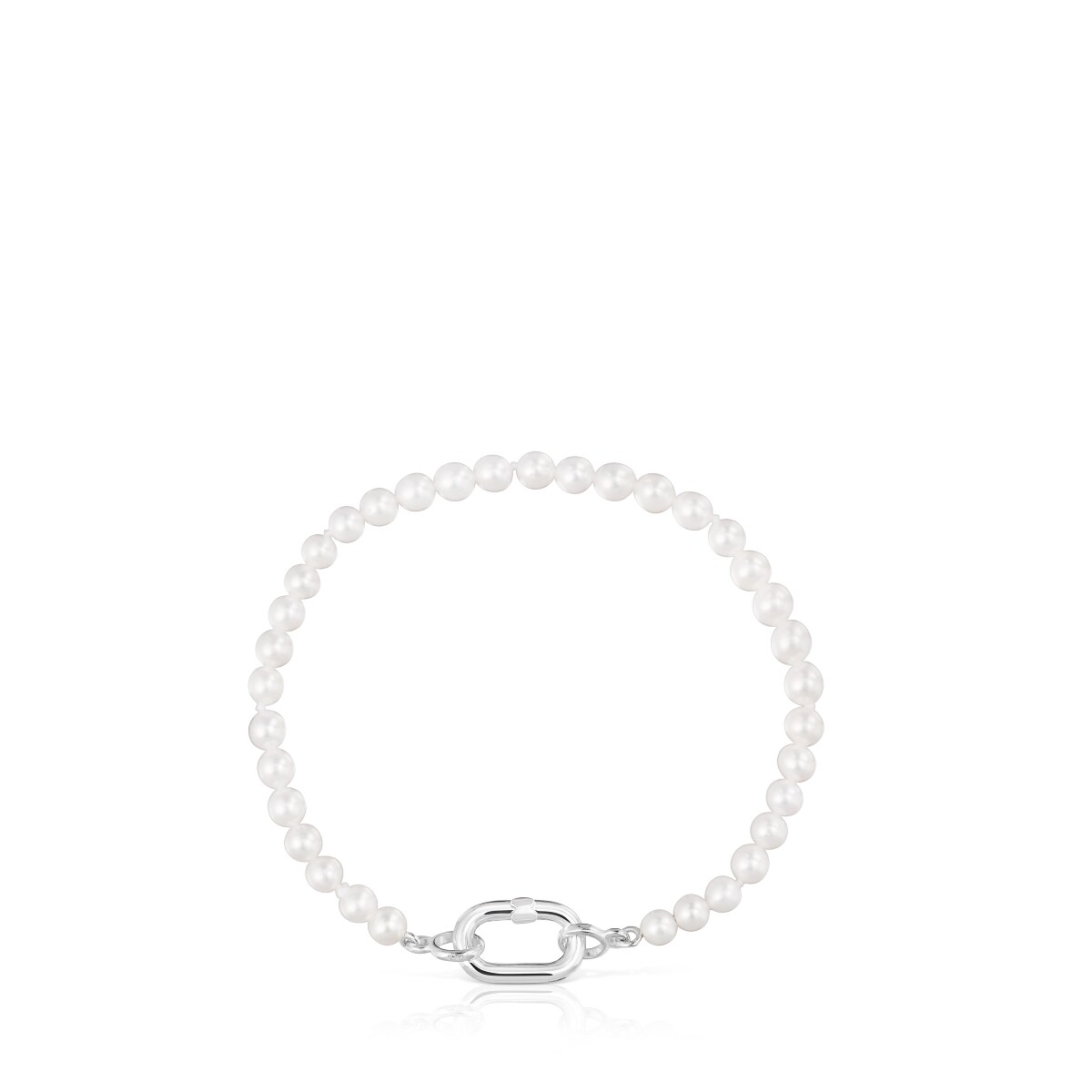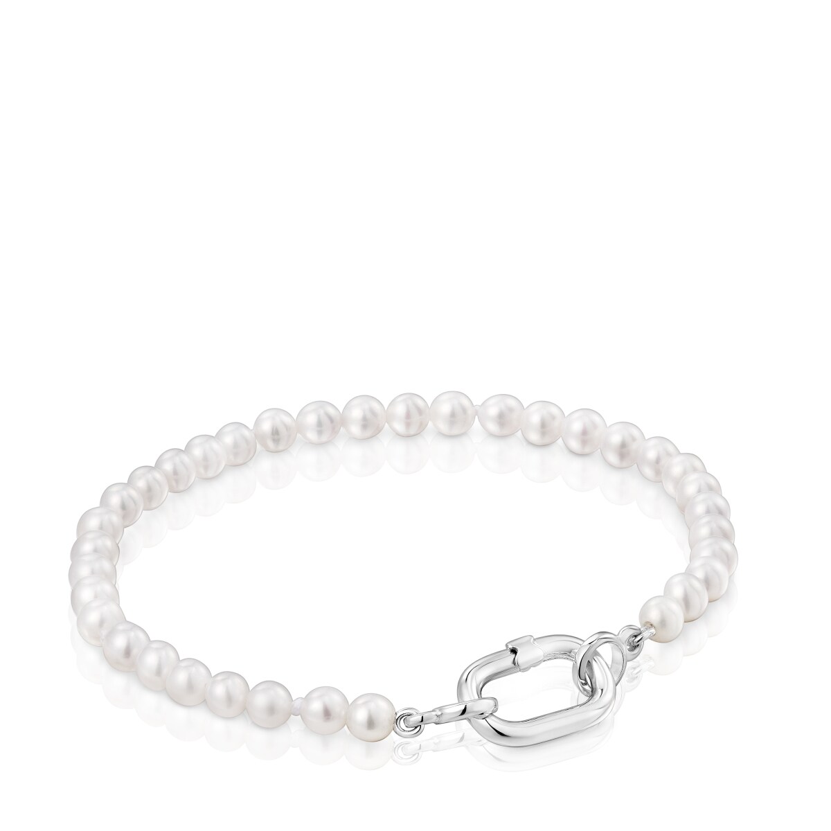 Браслет TOUS из коллекции Hold Oval из серебра с культивированным жемчугом. Материал: Серебро 925 пробы. Размер кольца: 15 мм. Размер культивированного жемчуга: 4 мм - 4,5 мм. Длина браслета: 18 см.