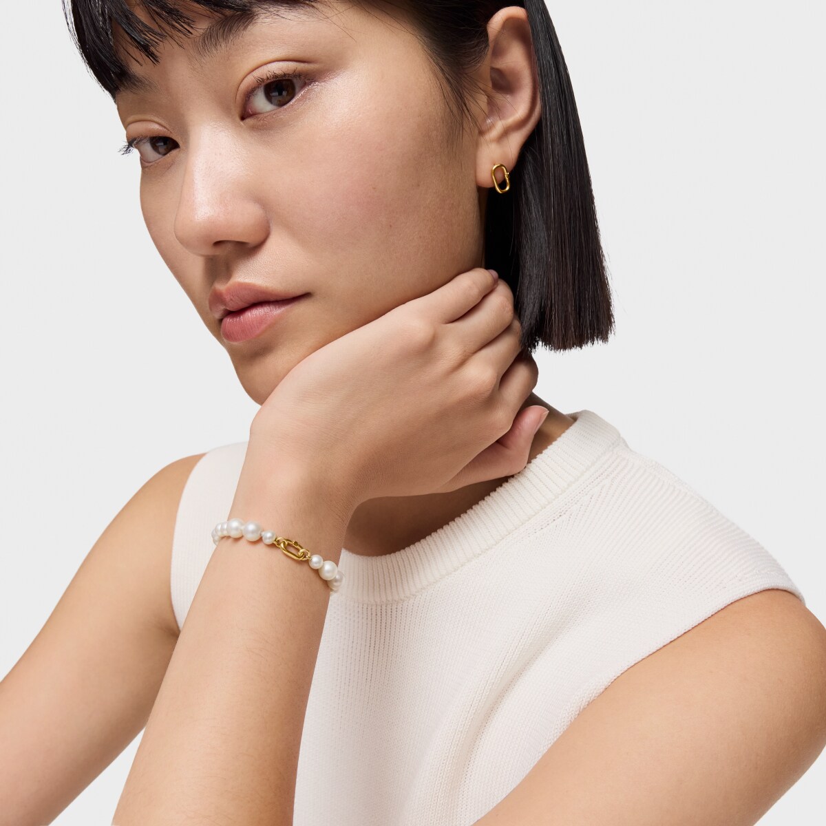 Браслет TOUS коллекция Hold Oval из золота с культивированным жемчугом. Материал: желтое золото 750 пробы. Диаметр жемчуга: 5-7 мм. Длина браслета: 17,5 см. Застёжка TOUS Hold Oval – кольцо.