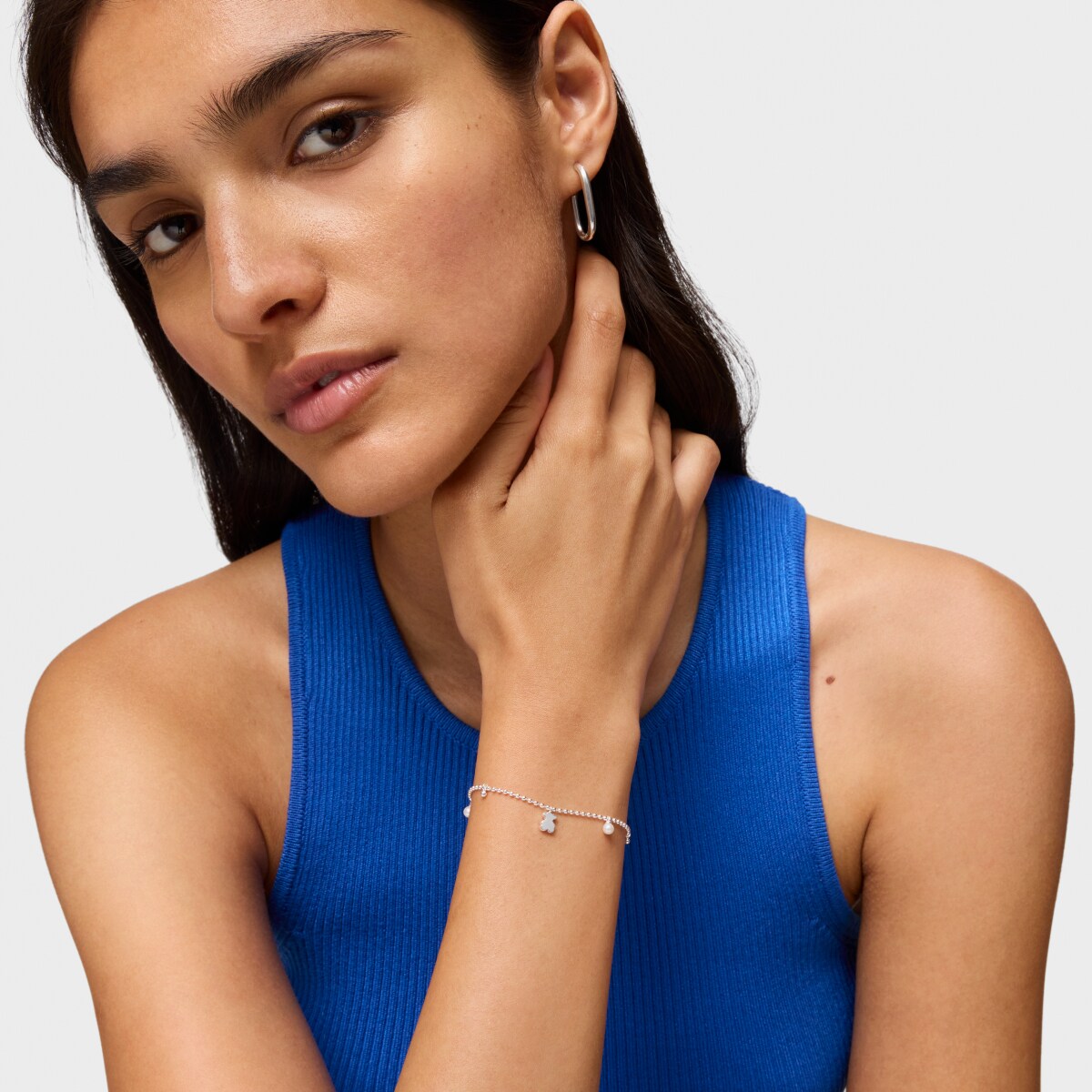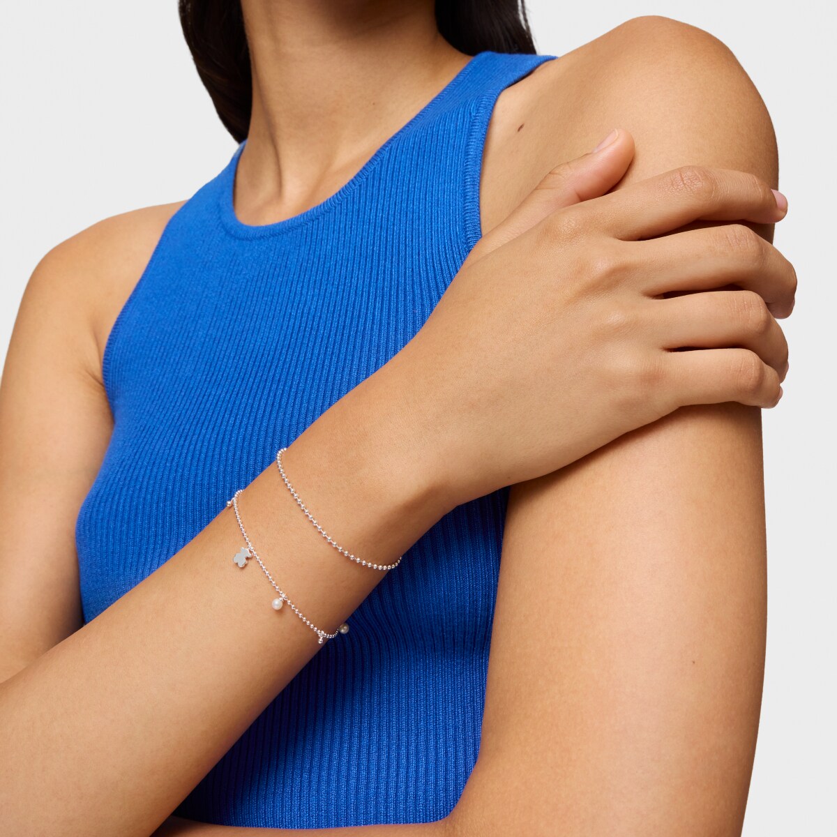 Серебряный браслет TOUS из коллекции Милые Фигурки (Sweet Dolls) с мишкой и культивированным жемчугом. Материал: серебро 925 пробы. Размер медвежонка: 6 мм. Размер жемчуга: 3 мм. Длина браслета: 17 см. Застежка-карабин.
