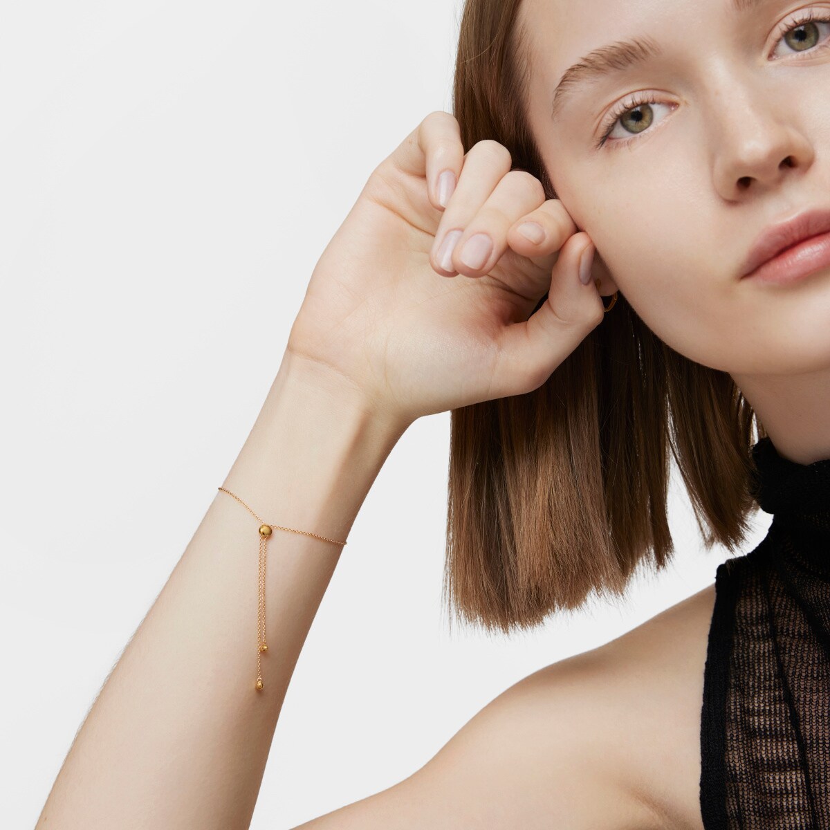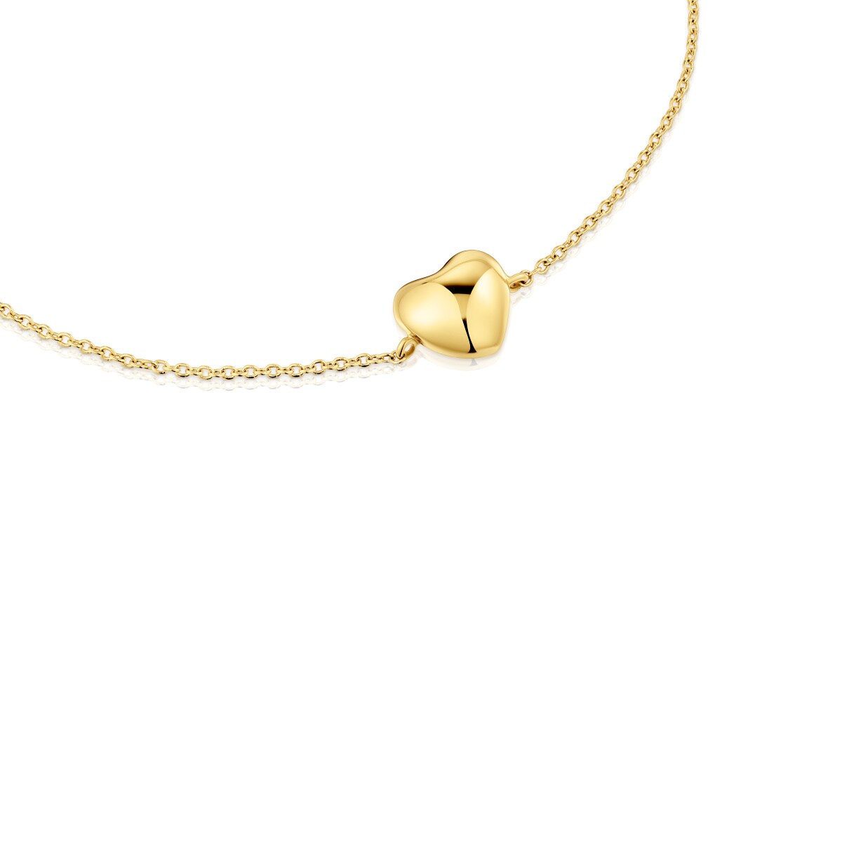 Золотой браслет из коллекции. Материал: желтое золото 750 пробы. Вставка из золота в виде сердца. Размер сердца: 8 мм. Общая длина: 25,5 см. Застежка-слайдер.