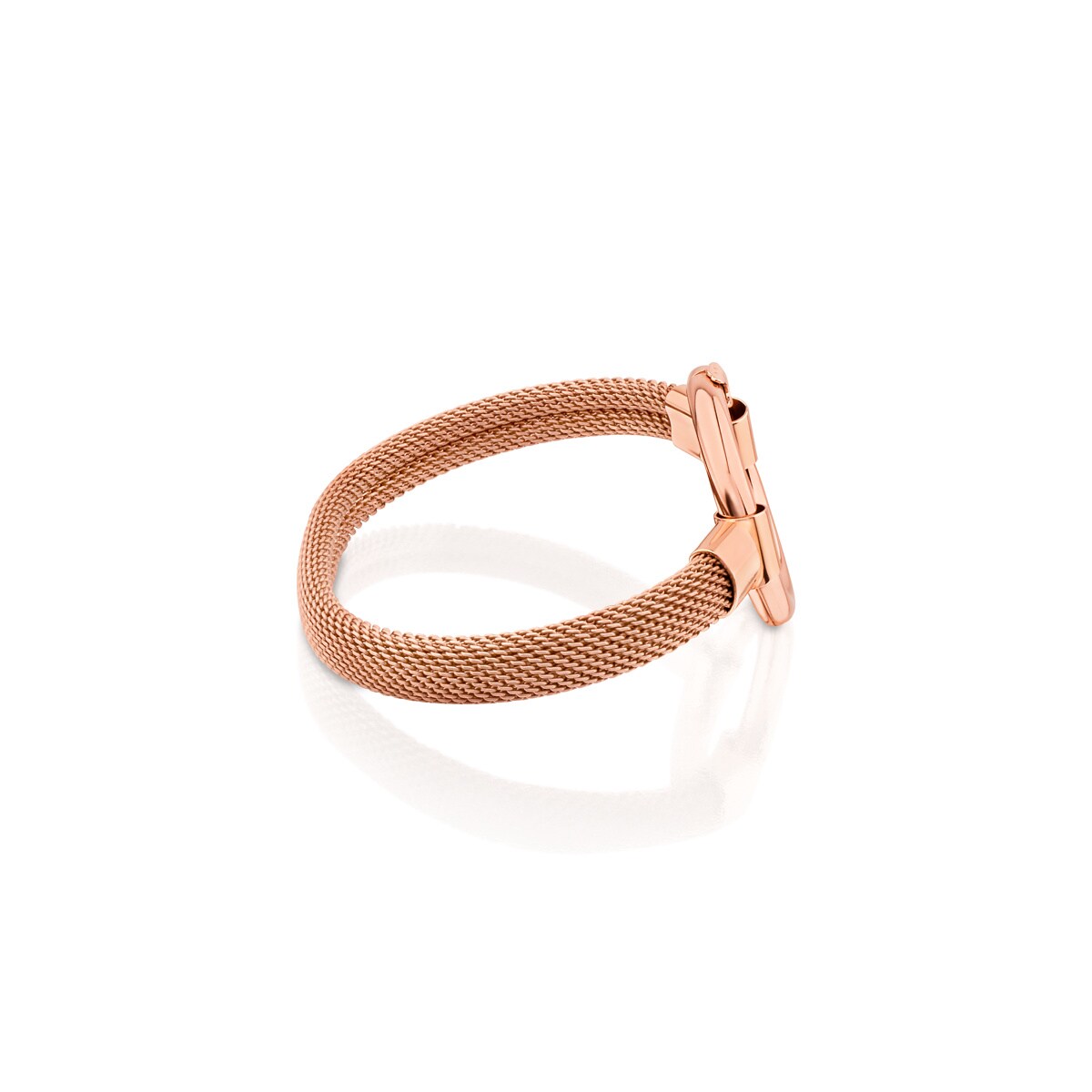 Браслет TOUS из коллекции Mesh Hold. Материал: сталь с ионным напылением и hold из розового вермеля - серебро 950 пробы с покрытием золота 750 пробы толщиной от 3 до 5 микрон, без каких-либо иных металлов между ними. Можно комбинировать с подвесками, мелкими украшениями или колечками. Кольцо: 3 см. Длина: 15 см.