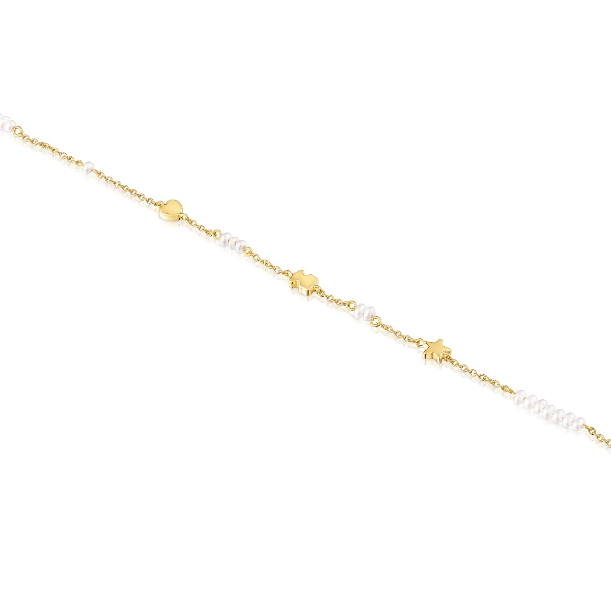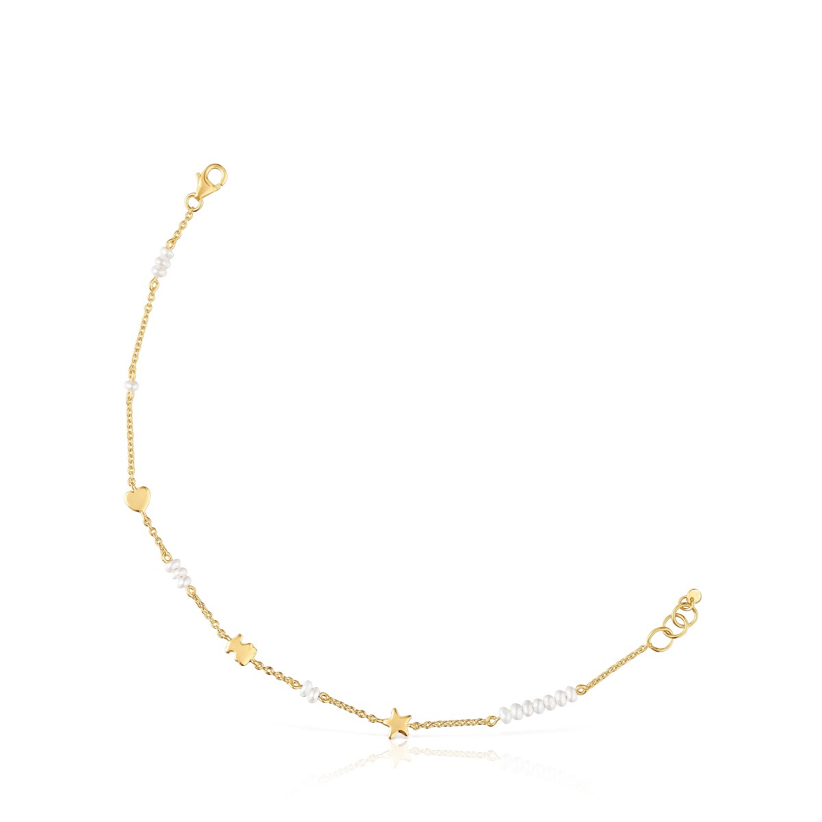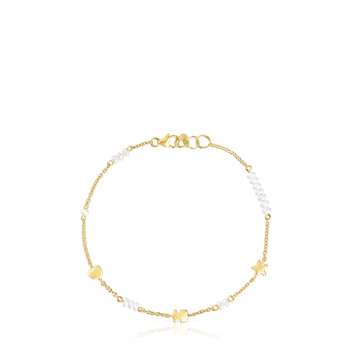 Браслет TOUS Sweet Dolls из желтого золота и культивированного жемчуга. Материал: жёлтого золота 750 пробы. Вставка: культивированный жемчуг. Размер жемчужин: 2–2,5 мм. Длина браслета: 17,5 см. Застёжка-карабин.