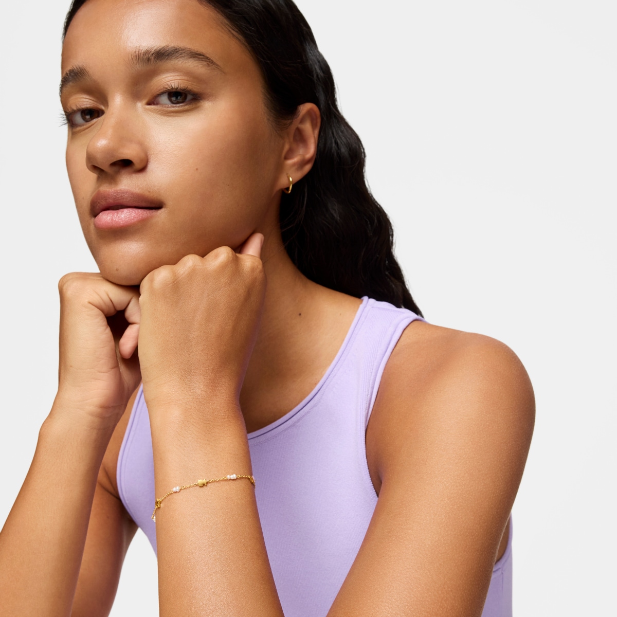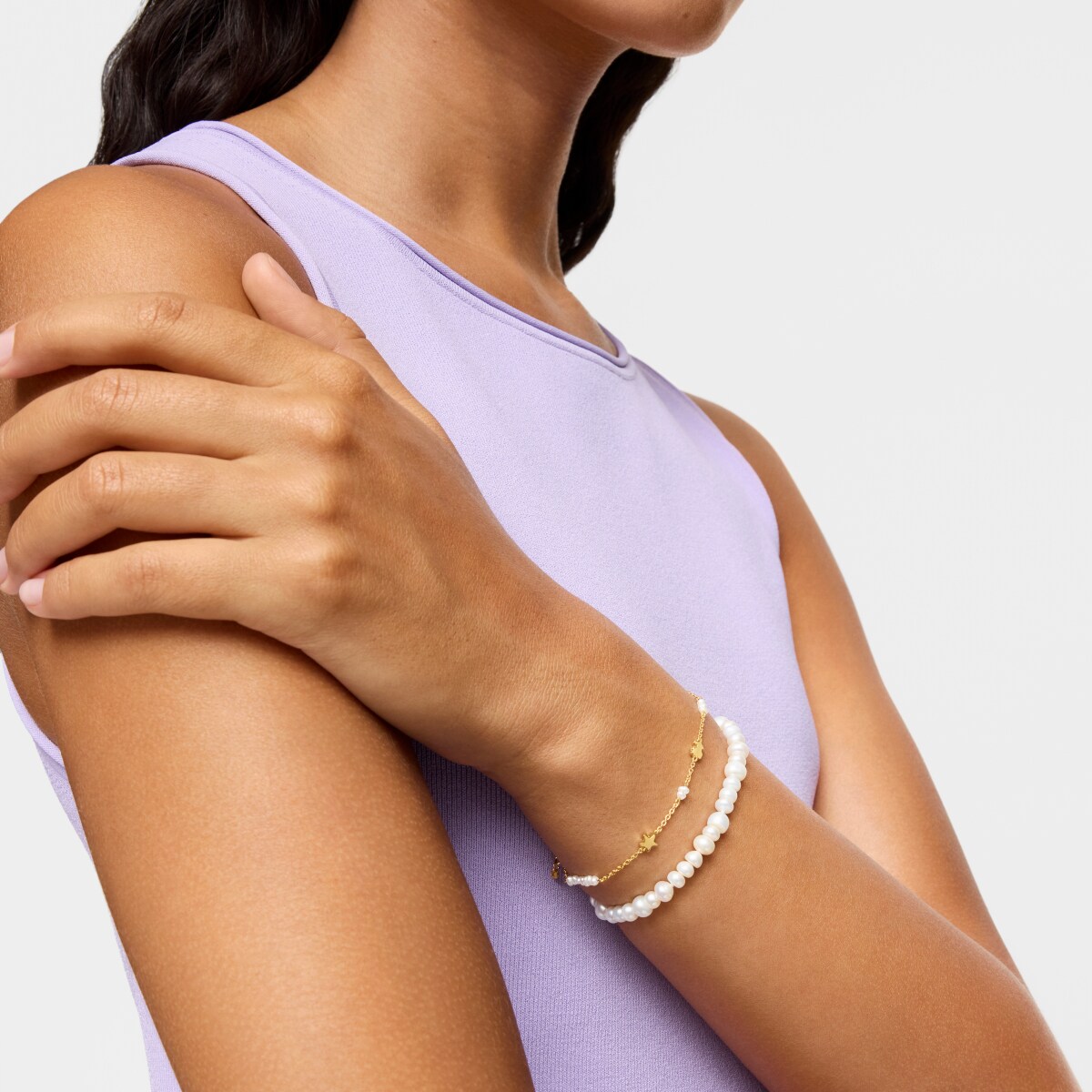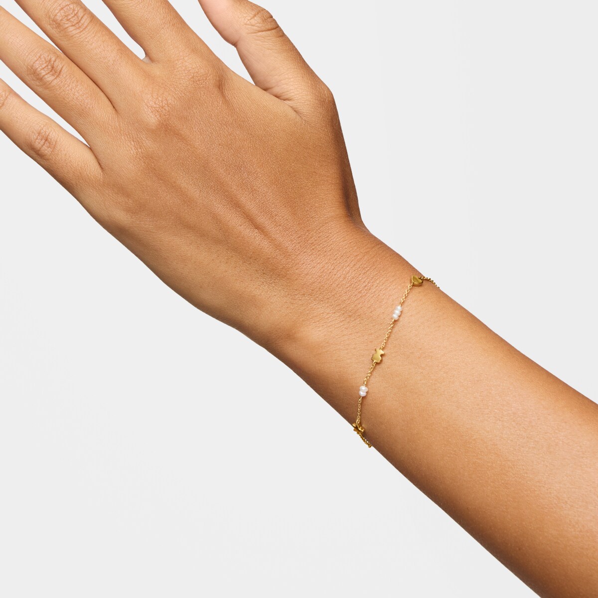 Браслет TOUS Sweet Dolls из желтого золота и культивированного жемчуга. Материал: жёлтого золота 750 пробы. Вставка: культивированный жемчуг. Размер жемчужин: 2–2,5 мм. Длина браслета: 17,5 см. Застёжка-карабин.