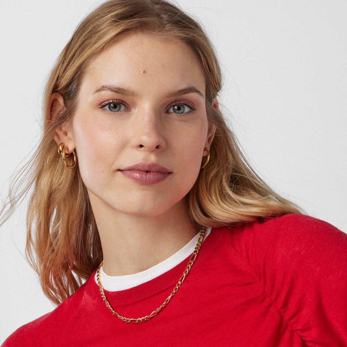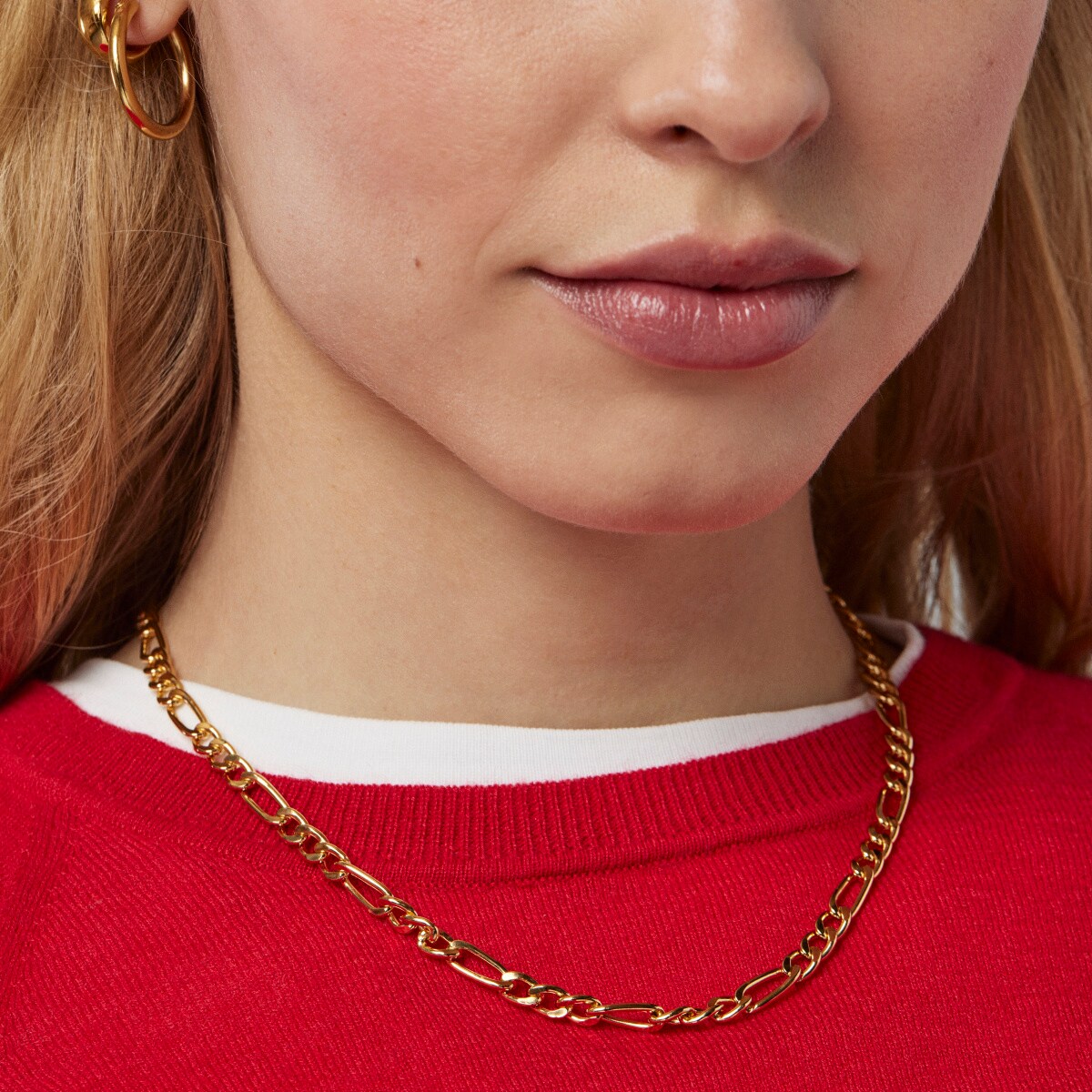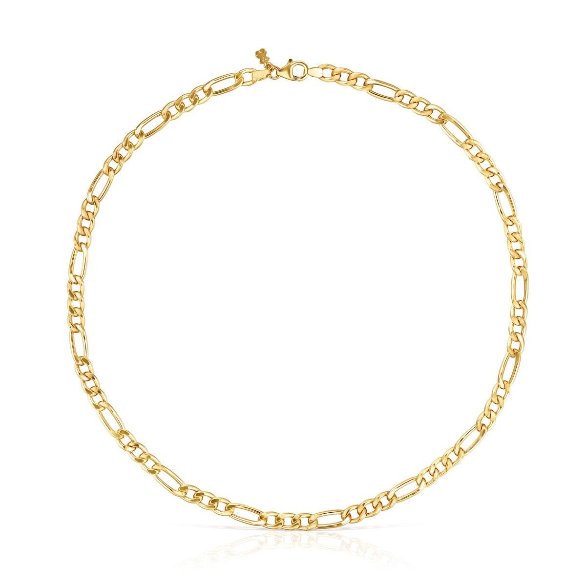 Колье-чокер TOUS из коллекции Chain из разных рельефных колец. Материал: желтый вермель – серебро 925 пробы с покрытием золота 750 пробы толщиной от 3 до 5 микрон, без каких-либо иных металлов между ними. Длина чокера: 45 см.