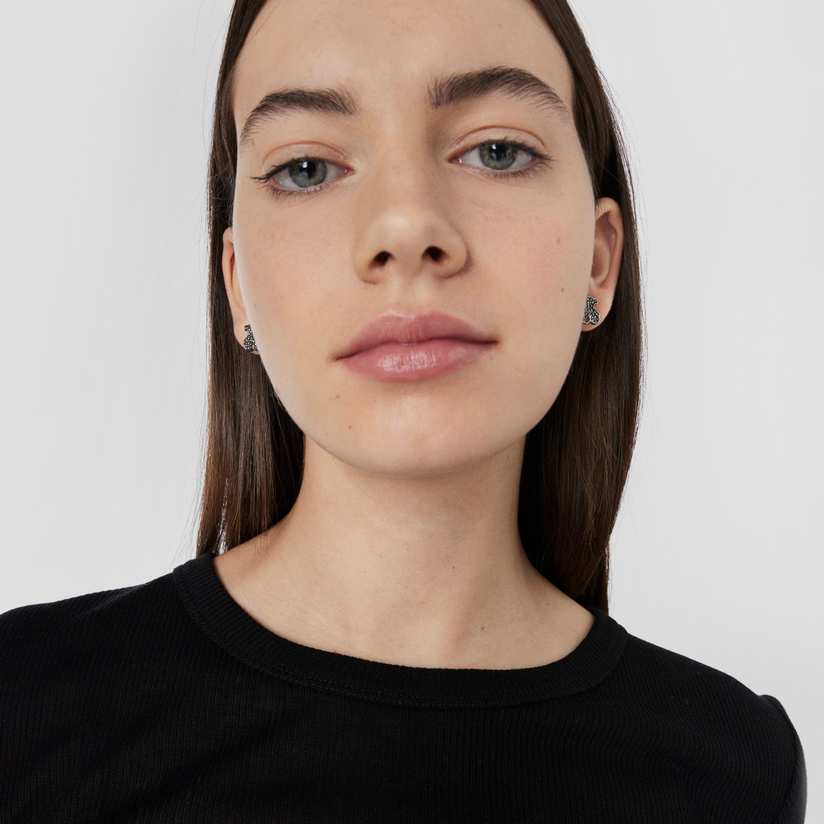Серьги TOUS из коллекции Grace из черненного серебра 925 пробы с марказитами. Размер: 1,1 см. Застежка-пусет.