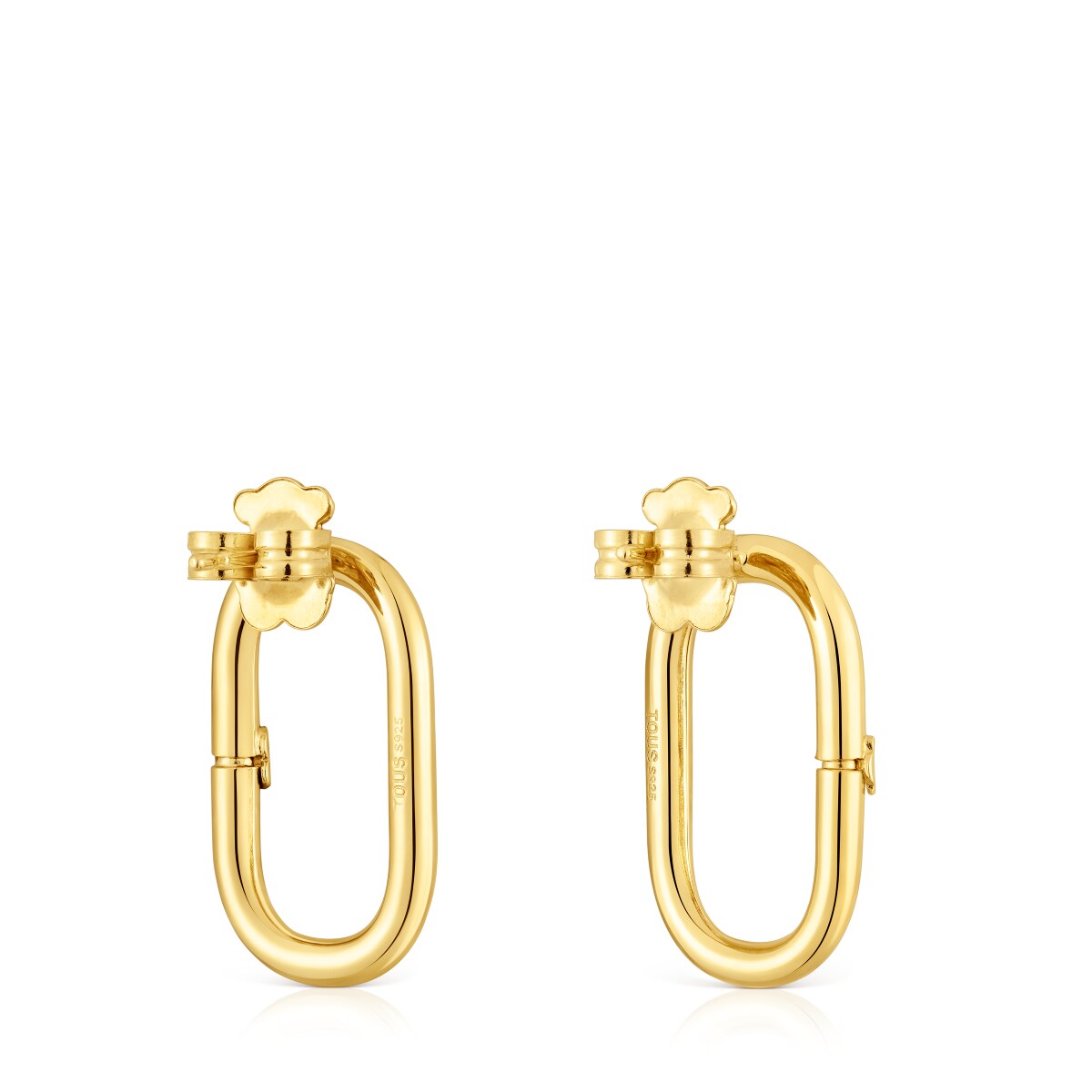 Серьги TOUS из коллекции Держи Овал (Hold Oval) из желтого вермеля. Материал: вермель - серебро 925 пробы с покрытием золота 750 пробы толщиной от 3 до 5 микрон, без каких-либо иных металлов между ними. Размер сережек: 25 мм. Застежка - пусет. Подвески, представленные на фото, не входят в комплект основного изделия и продаются отдельно.