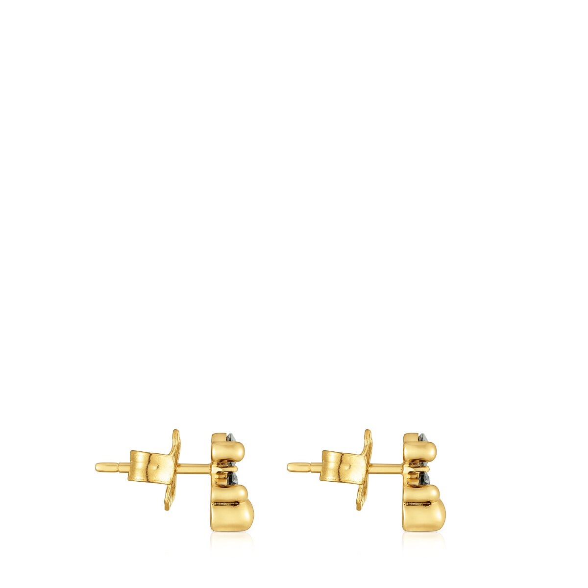Серьги из вермеля TOUS из коллекции Цветной Мишка (Color Bear LGG) в виде медвежонка с лабораторно выращенной шпинелью светло - зеленого цвета. Материал: вермель - серебро 925 пробы, покрытое слоем золота 750 пробы толщиной от 3 до 5 микрон, без каких-либо иных металлов между ними. Размер серег: 8 мм. Застежка-пусет. Лабораторно выращенная шпинель полностью соответствует натуральному по химическому составу и светопреломлению.