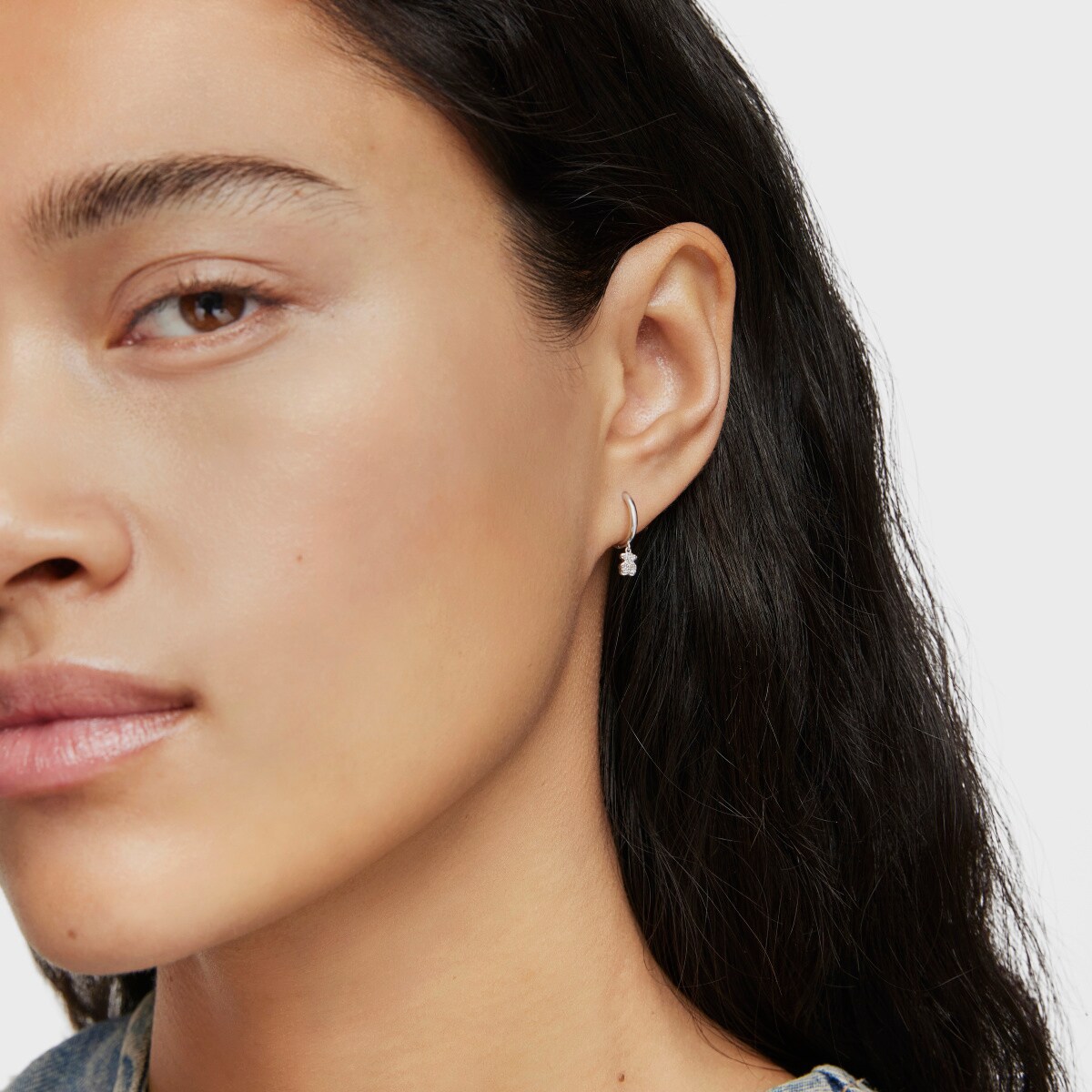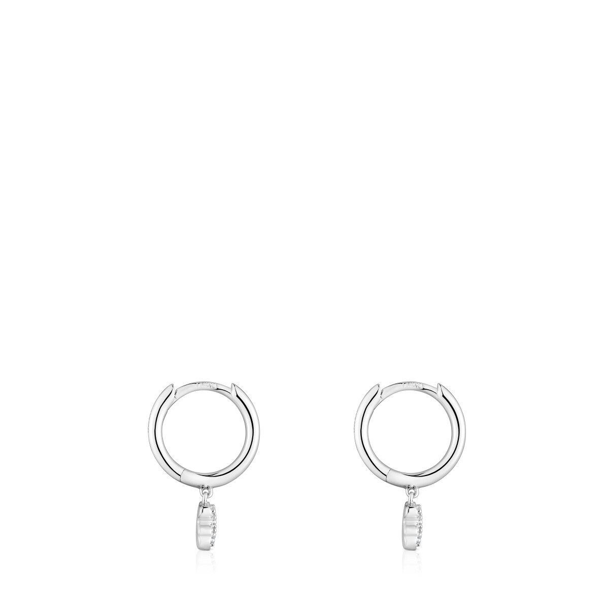 Серьги-кольца TOUS из коллекции Grain из белого золота с подвеской в форме медвежонка с бриллиантами. Материал: белое золото 750 пробы. Вставка: 10 бриллиантов 0,027кт. Качество бриллиантов: H/SI. Диаметр кольца: 8 мм. Размер медвежонка: 4,6 мм.