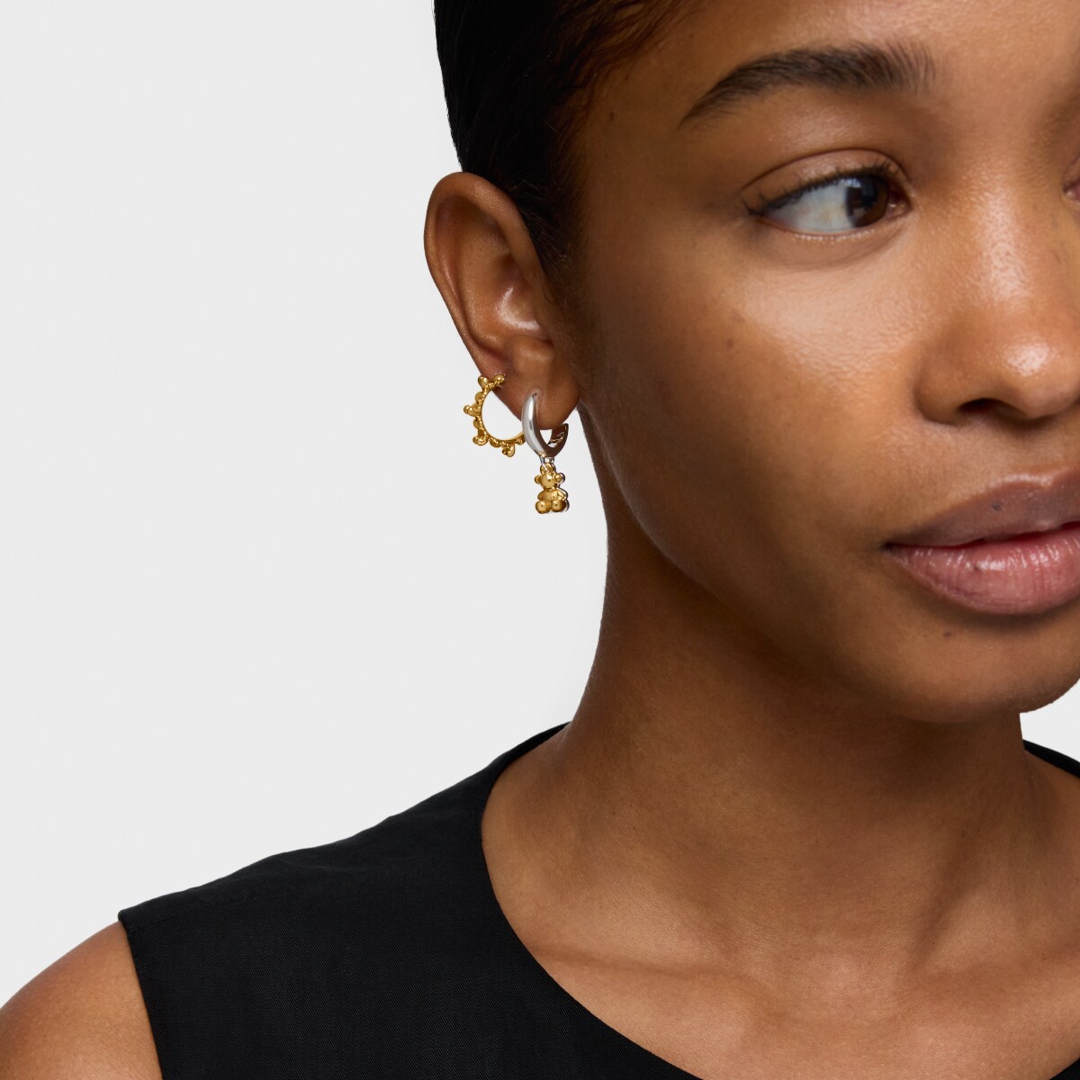 Серьги-креолы из коллекции из серебра и желтого вермеля. Материал: серебро 925 пробы и вермель - серебро 925 пробы с покрытием золота 750 пробы толщиной от 3 до 5 микрон, без каких-либо иных металлов между ними. Размер серьги: 2.8 см. Застежка - пусет.