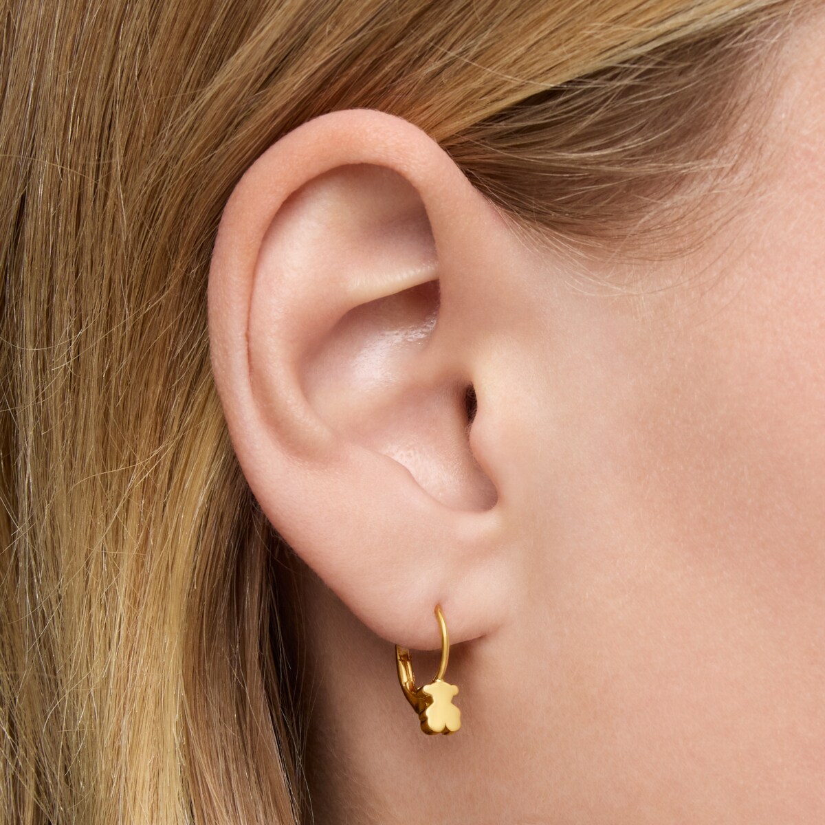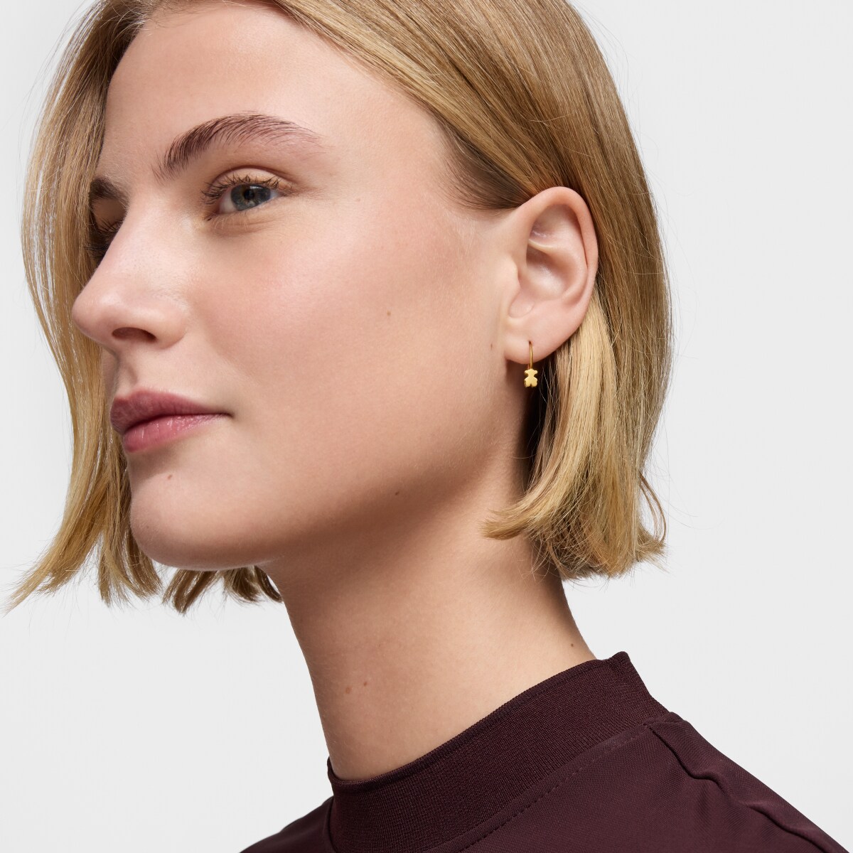 Золотые серьги-кольца TOUS из колекции Sweet Doll с подвеской в виде медвежонка. Материал: желтое золота 750 пробы. Размер мишки: 6 мм.