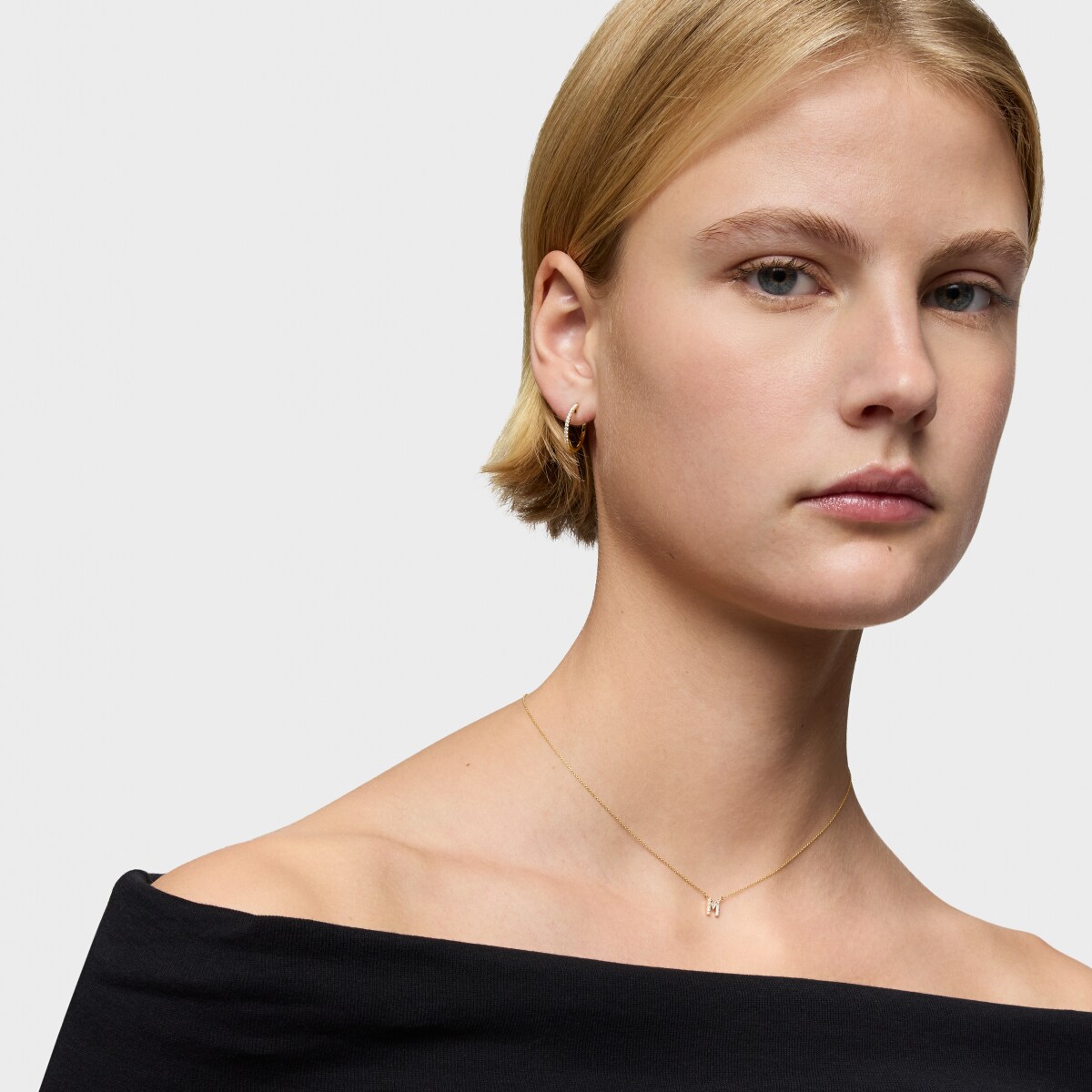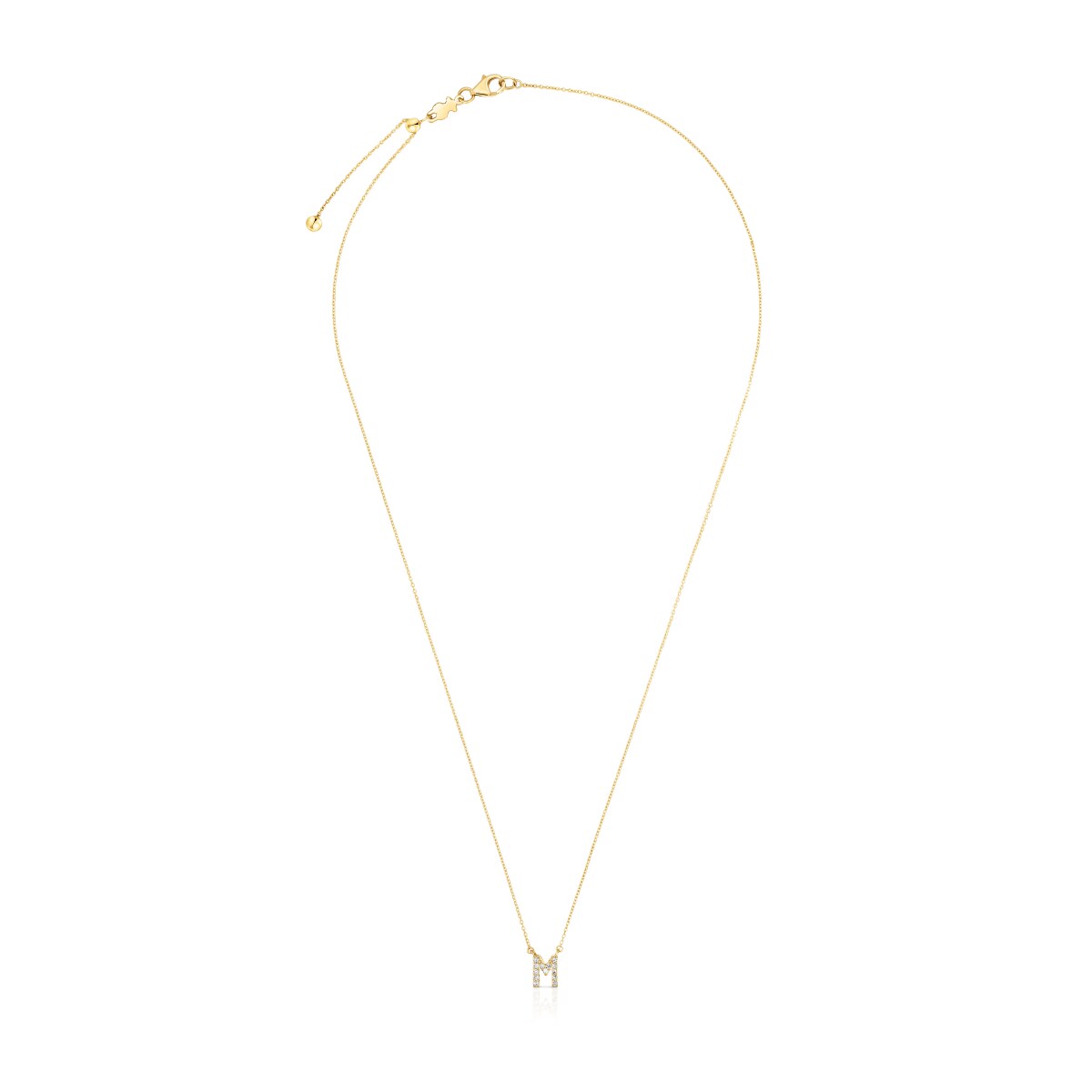 Колье TOUS из коллекции Alphabet с буквой «М» из желтого золота с бриллиантами классической огранки 0,05 карата. Материал: Желтое золото 750 пробы. Качество бриллиантов: H/SI. Длина колье: 42–45 см.
