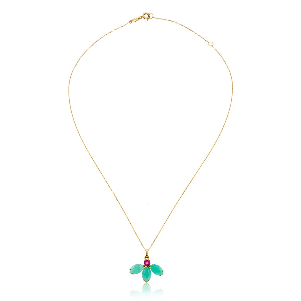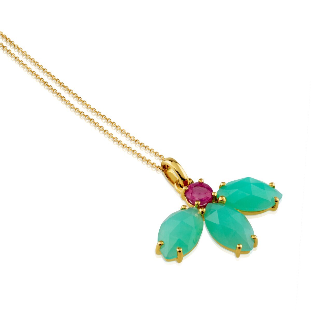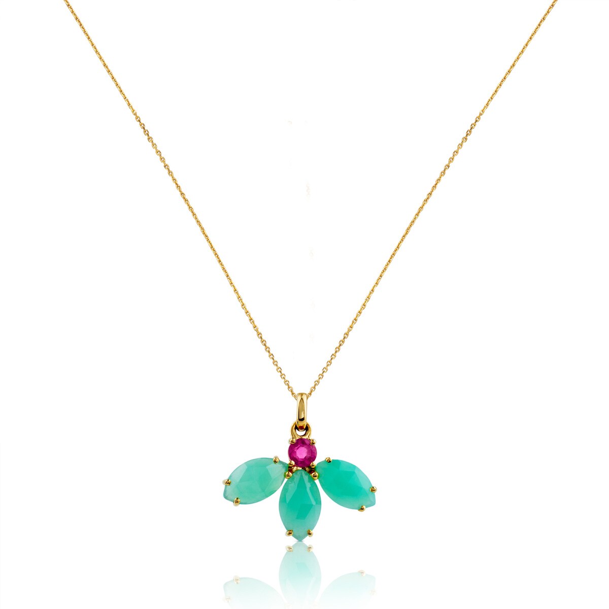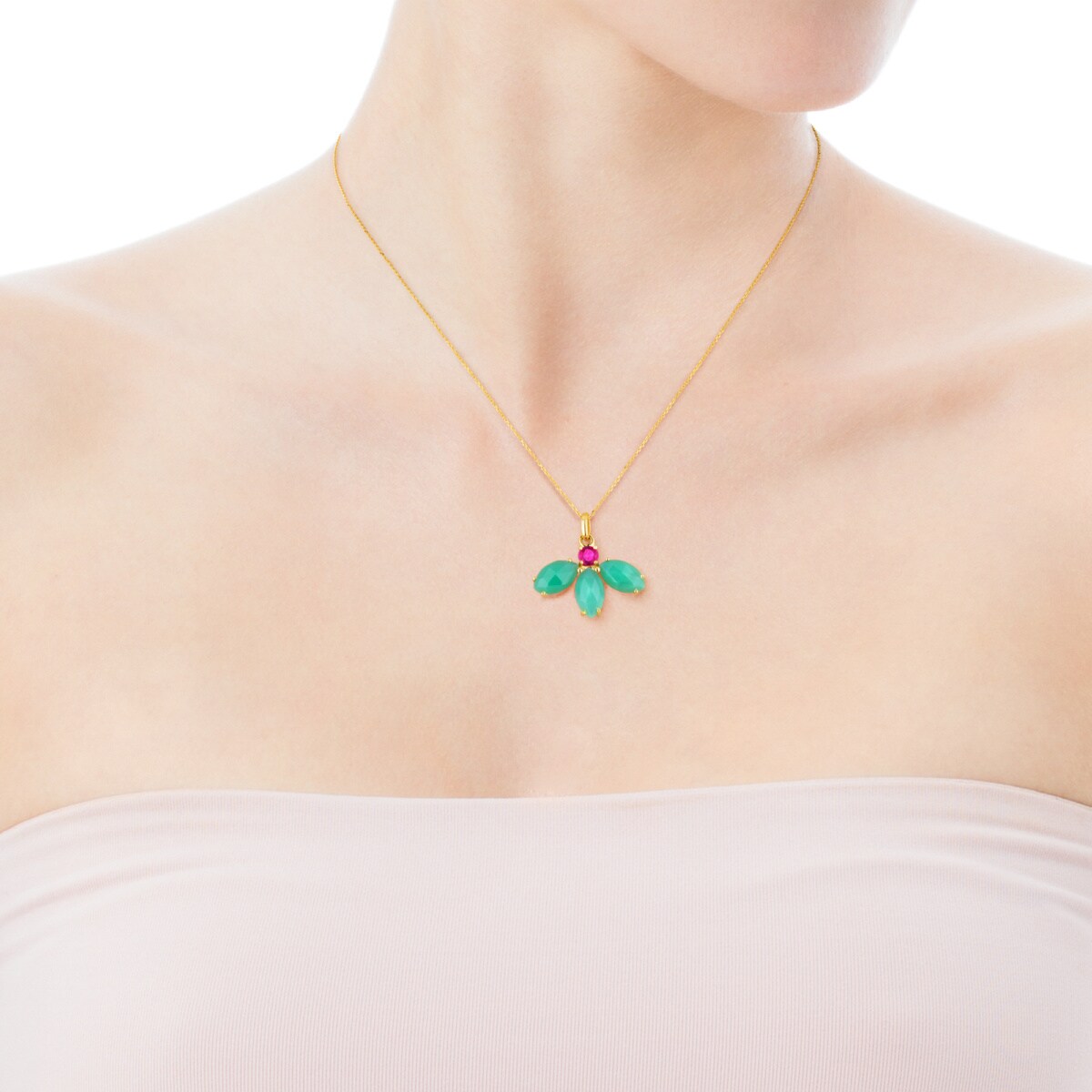 Золотое колье TOUS из коллекции Beach с камнями. Матереал: золото 750 пробы. Вставка: хризопраз и рубин. Длина цепи: 40-45 см.
