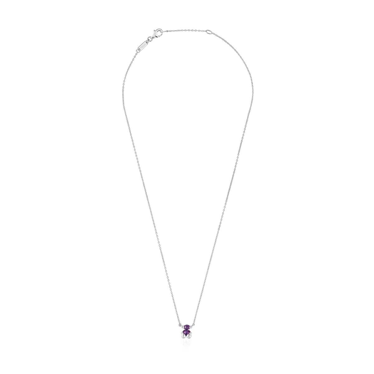 Серебряное колье TOUS из коллекции Color Bear LGG с медвежонком и лабораторно выращенным сапфиром. Материал: серебро 925 пробы. Вставка: лабораторно выращенный фиолетовый сапфир. Размер медвежонка: 8 мм. Длина колье: 40-45 см. Застёжка-карабин.