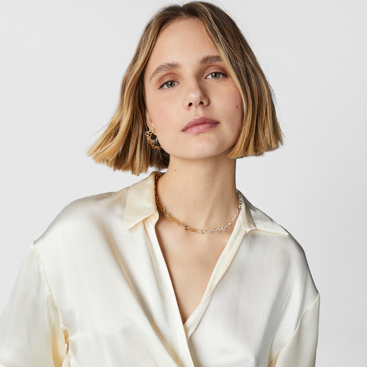 Колье TOUS из коллекции Карусель (Carrusel) из серебра и желтого вермеля с кольцами в форме медвежонка. Материал: серебро 925 пробы и вермель – серебро 925 пробы, покрытое слоем золота 750 пробы толщиной от 3 до 5 микрон, без каких-либо иных металлов между ними. Длина: 43 см.