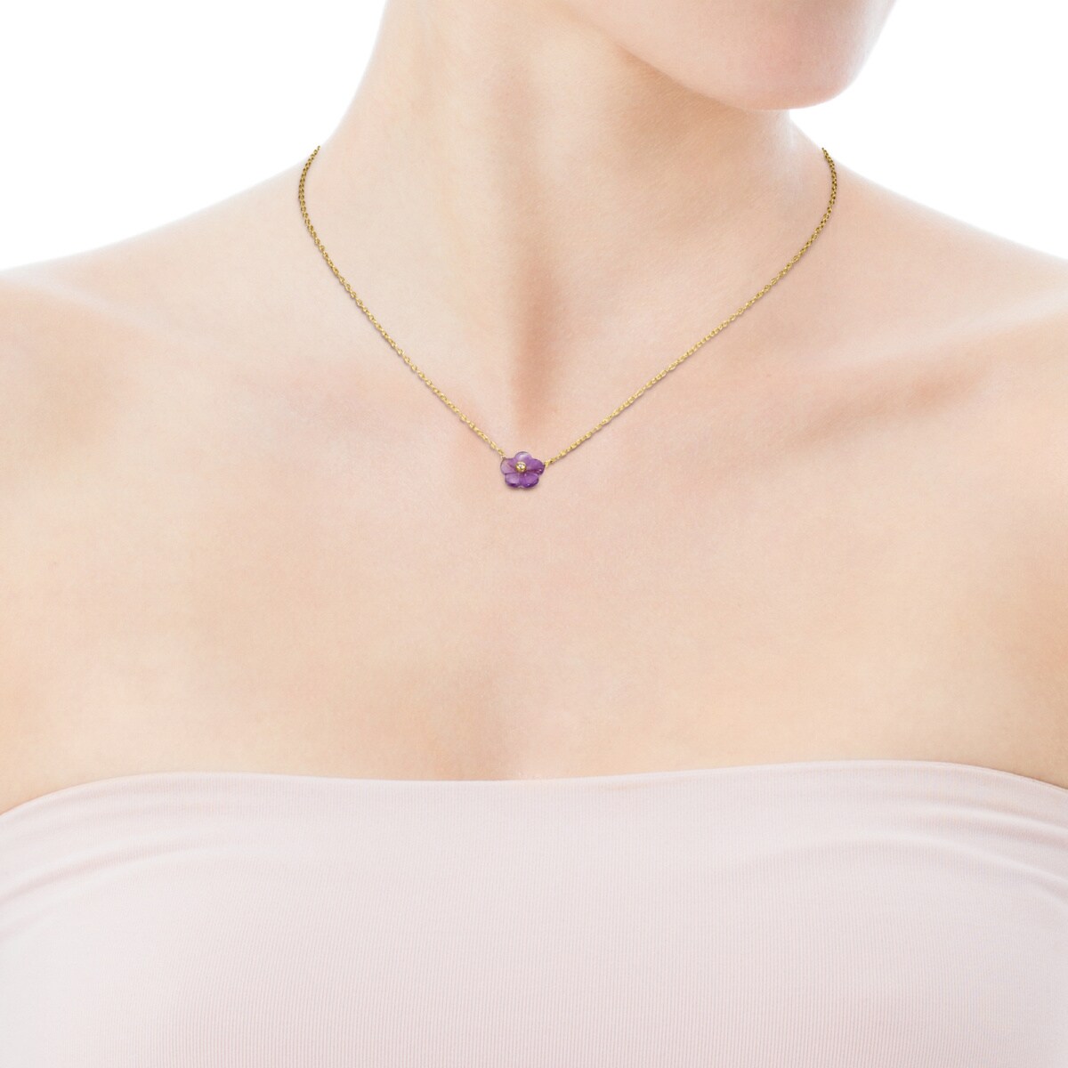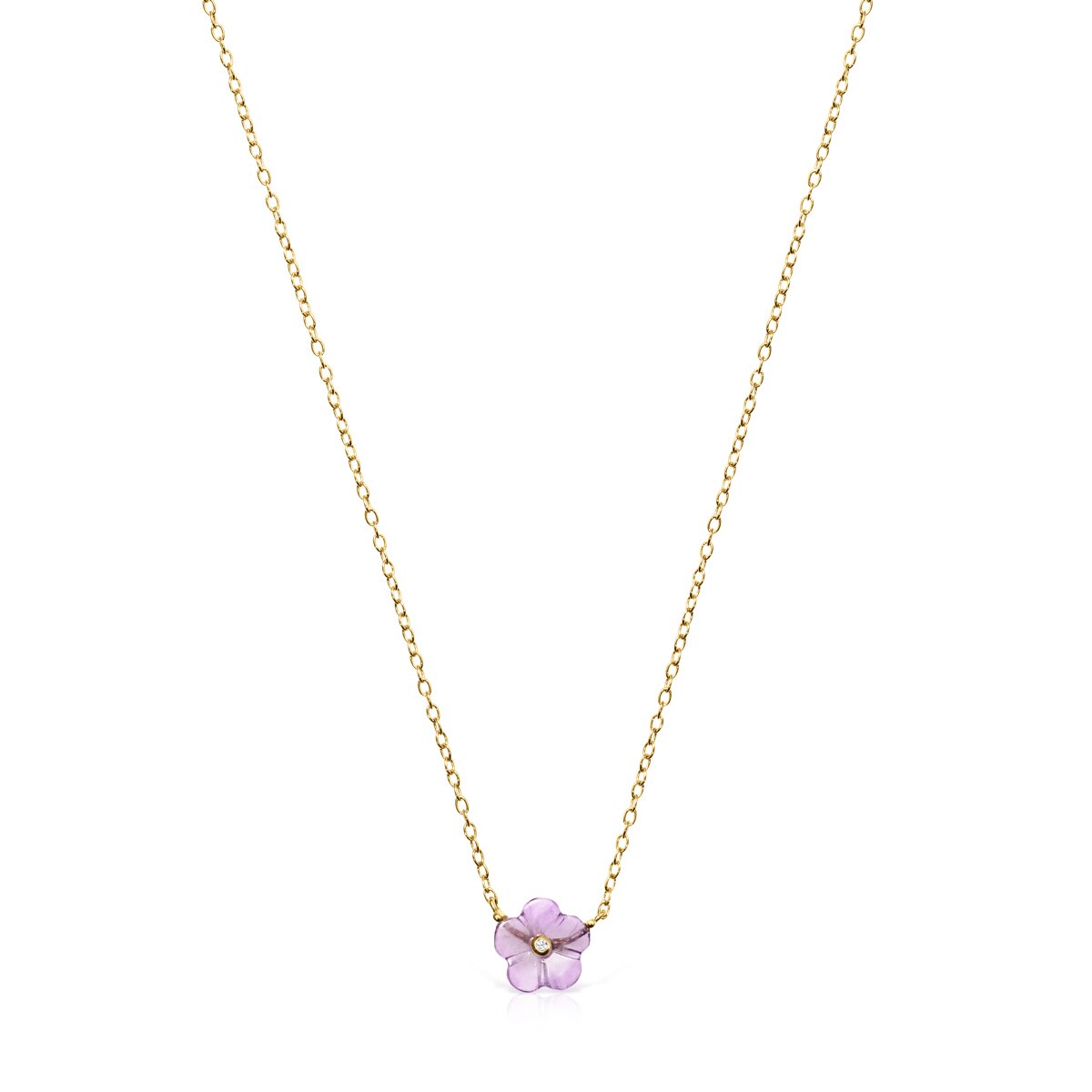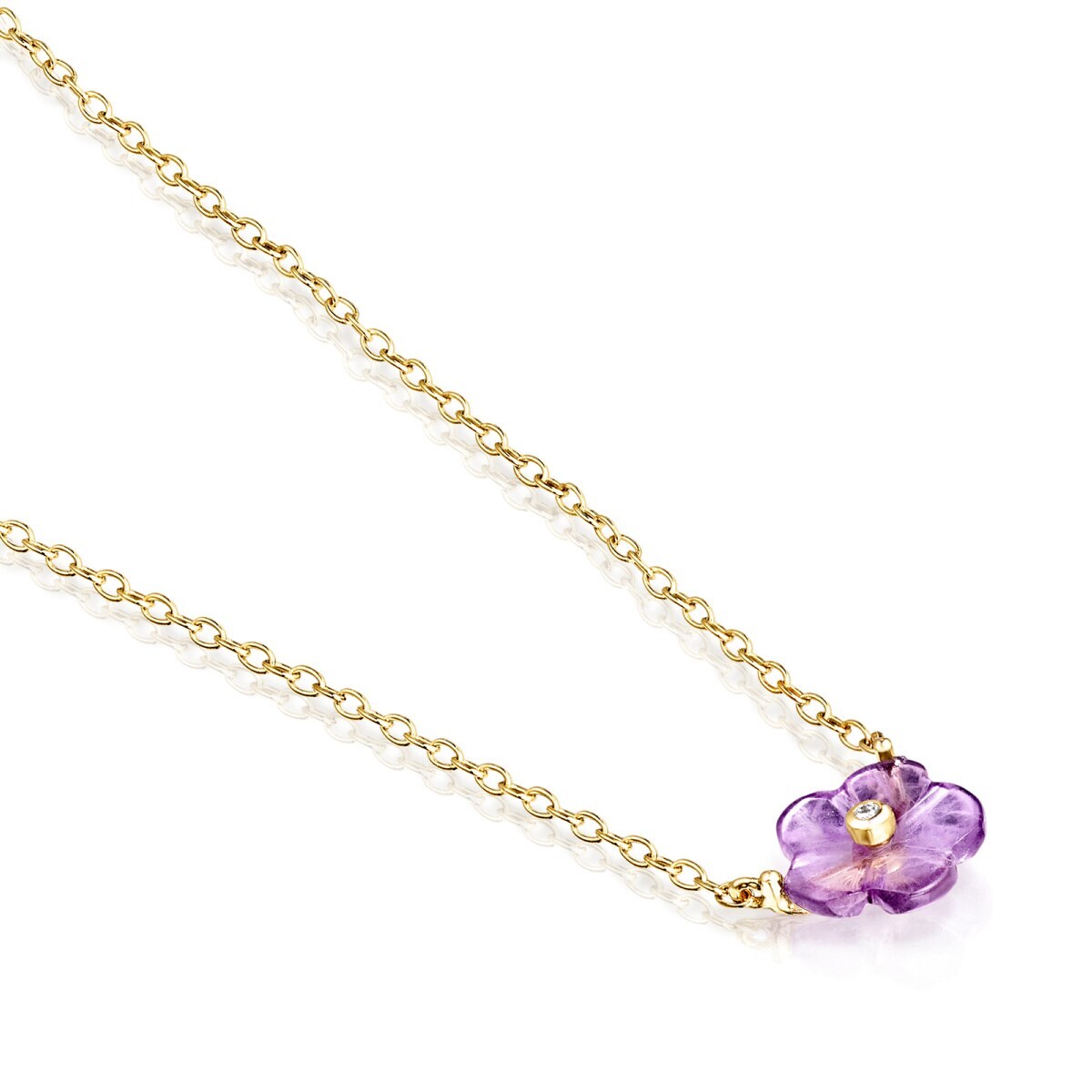 Золотое колье TOUS из коллекции Vita из золота с аметистом и бриллиантом. Материал: золото 750 пробы. Вставка: аметист, бриллиант-0,01 карат. Размер: 1 см. Длина: 42 см.