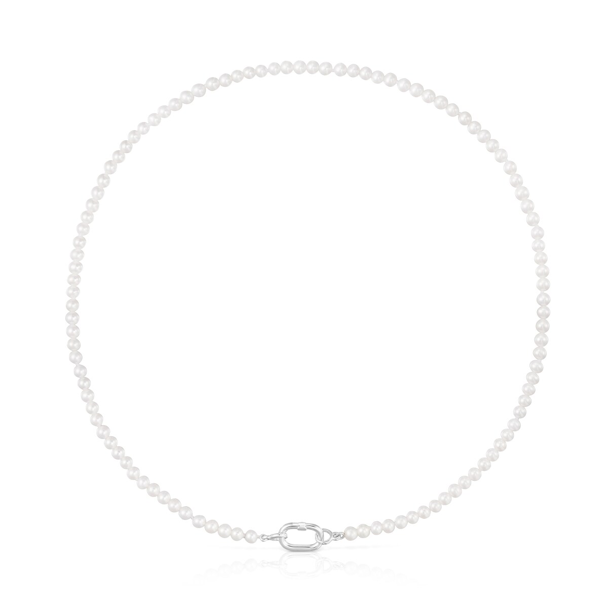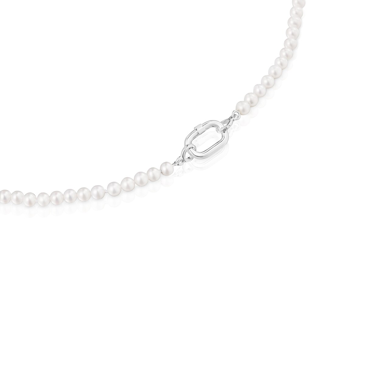 Ожерелье TOUS из коллекции Hold Oval из культивированного жемчуга с карабином из серебра. Материал: Серебро 925 пробы. Вставка: Культивированный жемчуг. Размер кольца: 15 мм. Размер культивированного жемчуга: 4–4,5 мм. Длина ожерелья: 47 см. Застёжка – кольцо Hold.