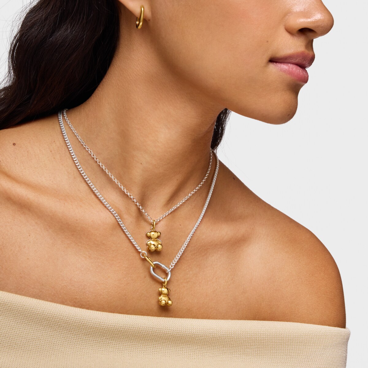 Кулон TOUS из коллекции Отважный Мишка (Bold Bear) состоит из двух кулонов, один мишка из желтого вермеля, второй мишка из серебра. Материал: серебро 925 пробы и вермель - серебро 925 пробы, покрытое слоем золота 750 пробы толщиной от 3 до 5 микрон, без каких-либо иных металлов между ними. Размер мишки: 16 мм. Цепь не включена в комплект.