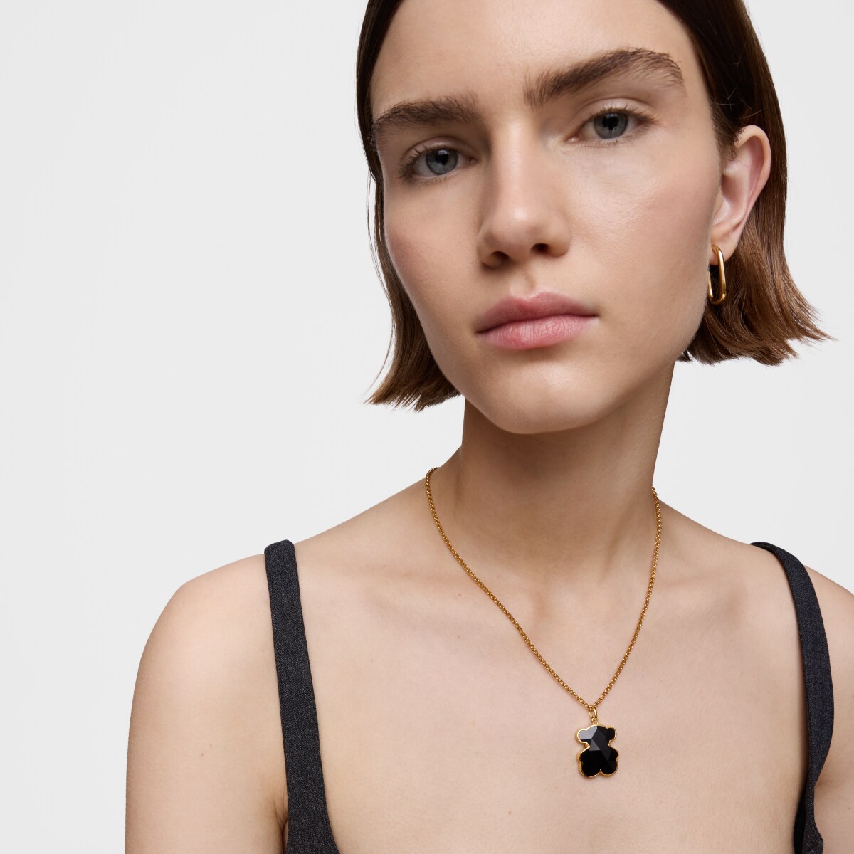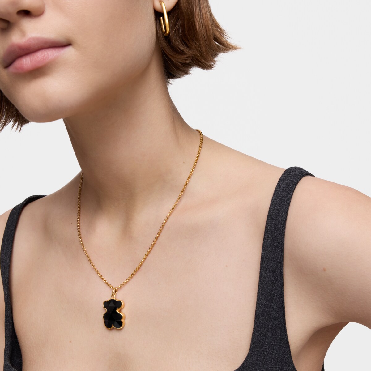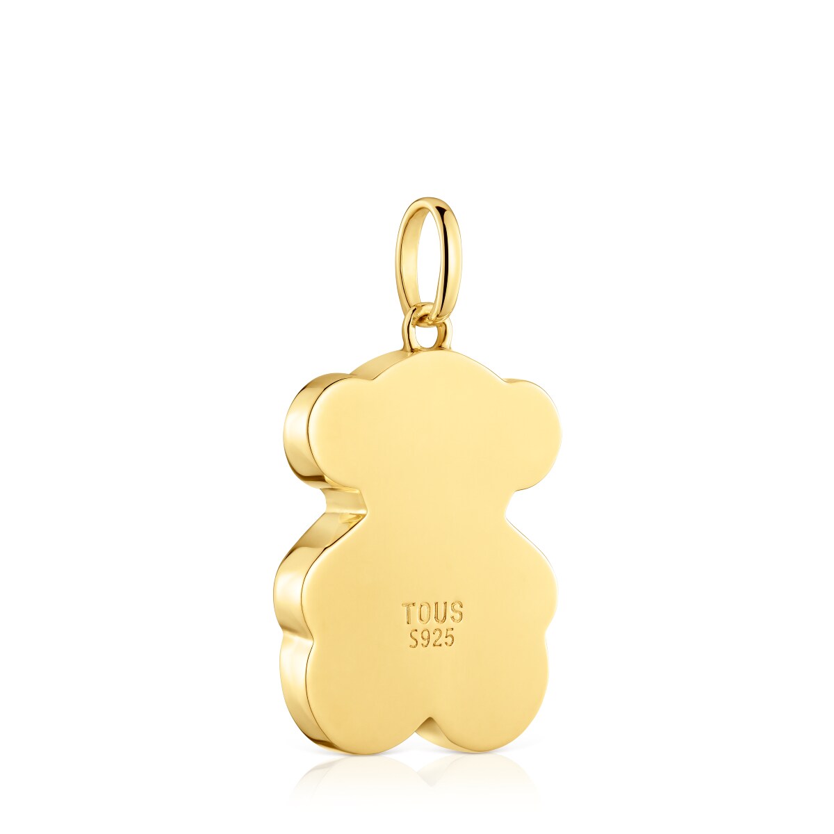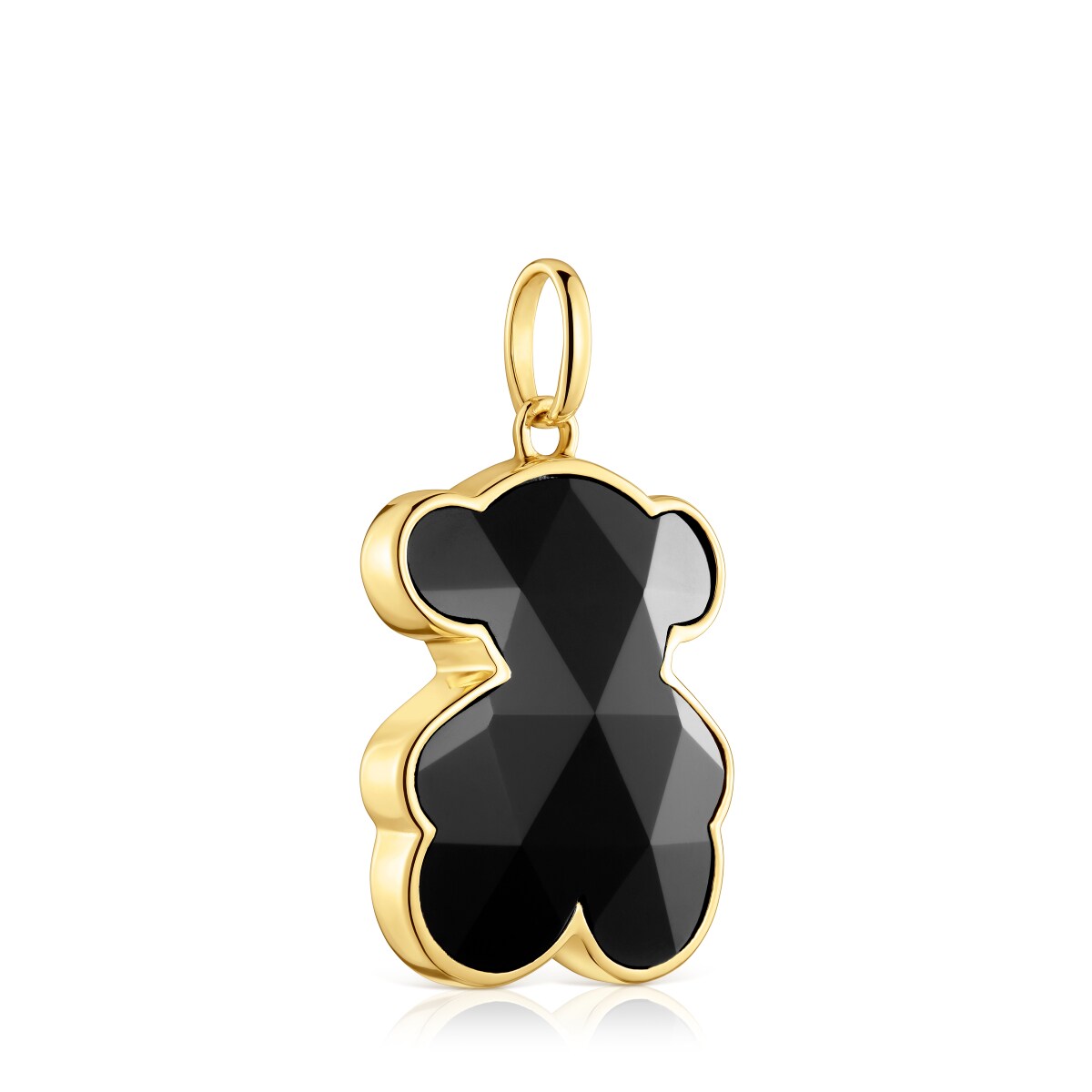 Кулон TOUS из коллекции Символ Цвета (Icon Color) из желтого вермеля в форме мишки с черным ониксом. Материал: вермель - серебро 925 пробы, покрытое слоем золота 750 пробы толщиной от 3 до 5 микрон, без каких-либо иных металлов между ними. Размер: 2,4 см. Цепь не включена в комплект.