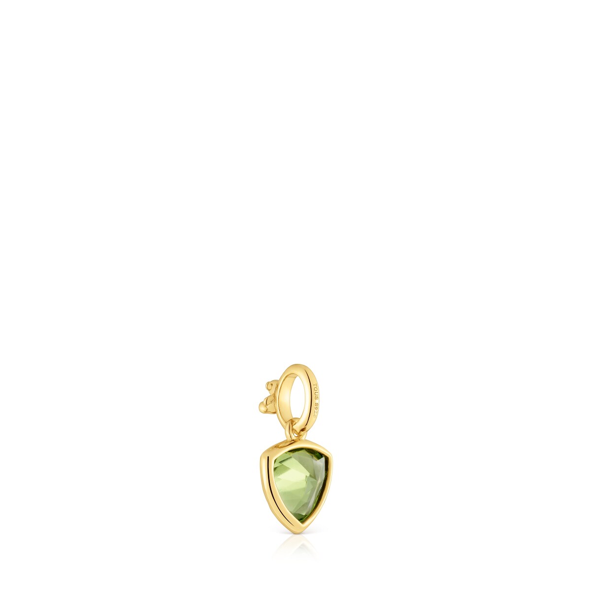 Кулон TOUS из коллекции Medallions из вермеля с перидотом. Материал: Вермель – серебро 925 пробы с покрытием золота 750 пробы толщиной от 3 до 5 микрон, без каких-либо иных металлов между ними. Вставка: перидот с огранкой "триллион". Размер кулона: 10 мм. Цепочка в комплект не входит.