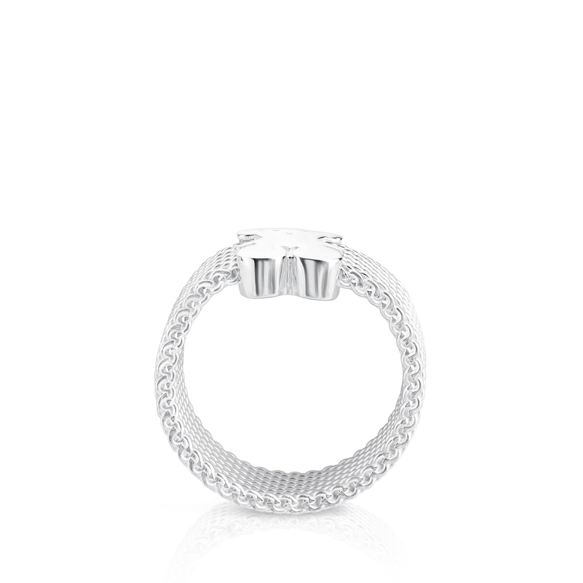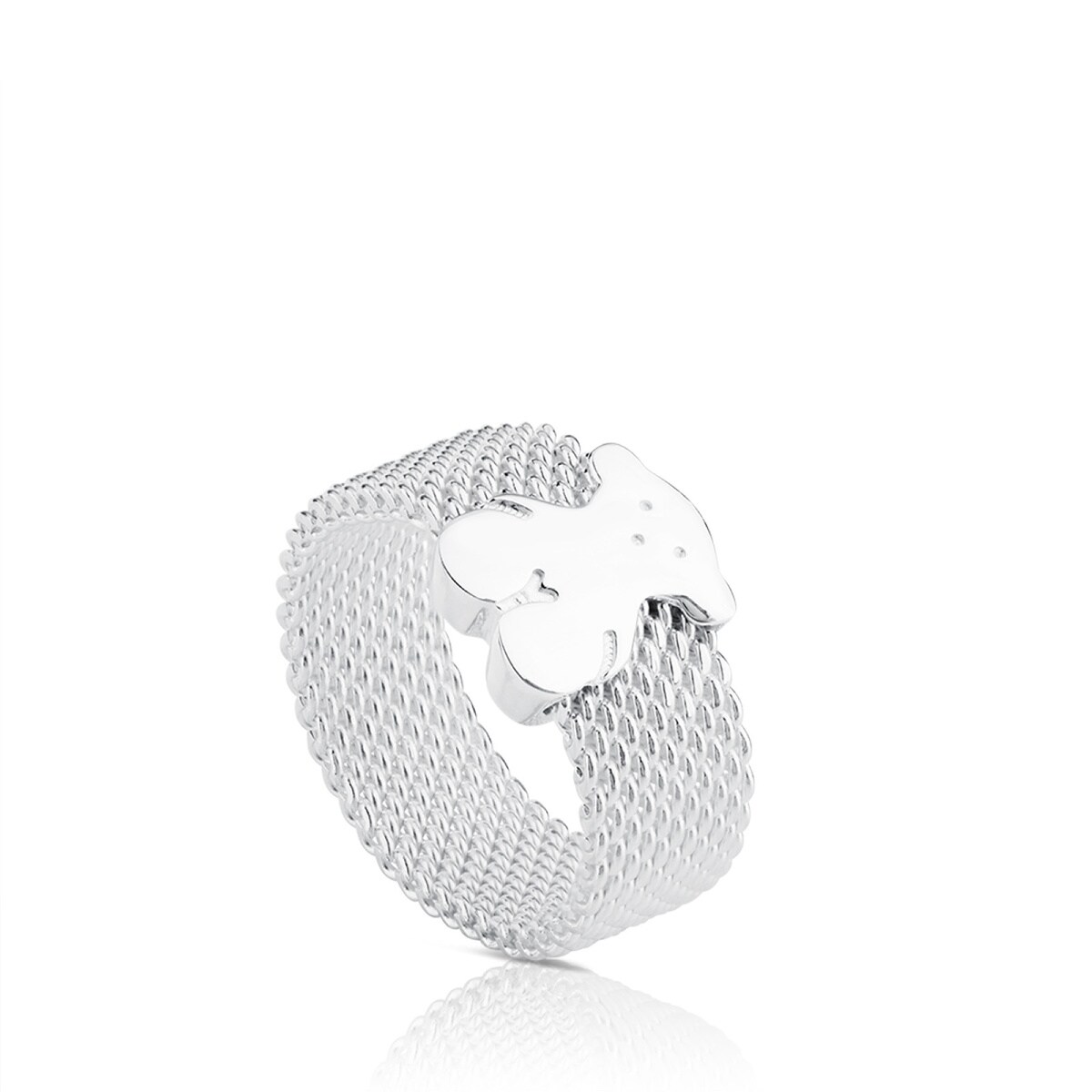 Серебряное кольцо TOUS из коллекции Символ Меш (Icon Mesh) с медвежонком. Материал: серебро 950 пробы. Ширина шинки: 7 мм. Размер медвежонка: 1 см. Соотношение размеров колец можно посмотреть по ссылке https://rashel.org/help/