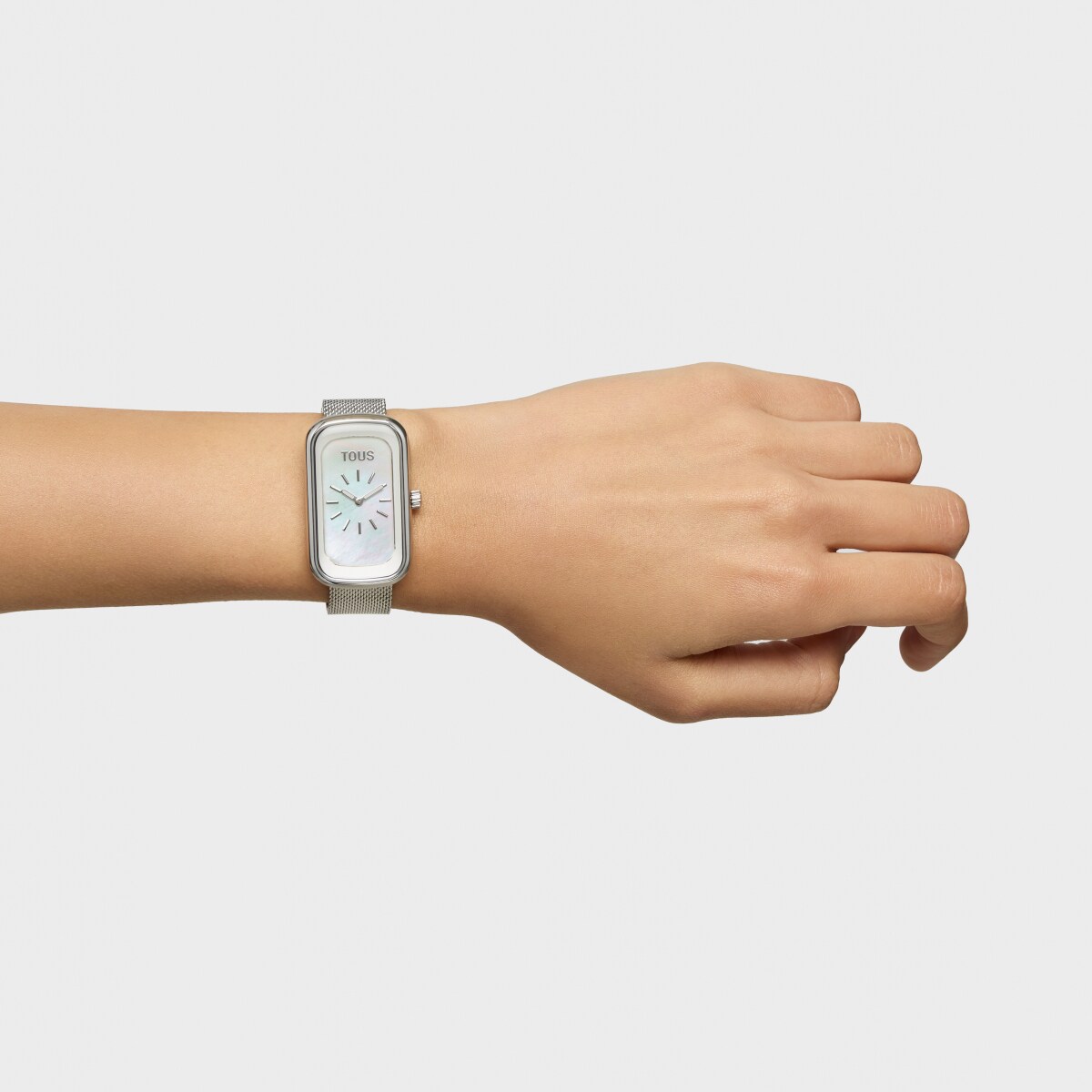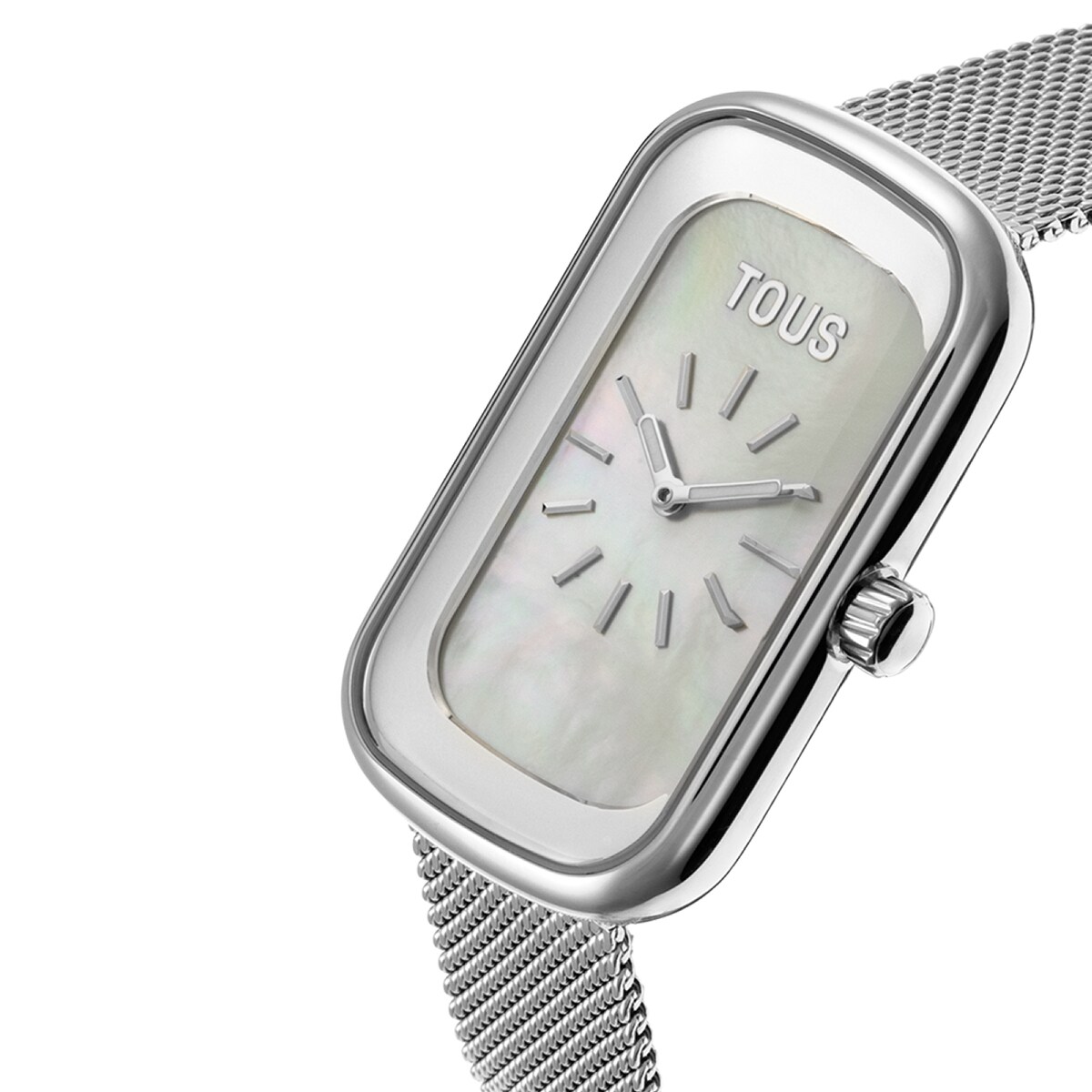 Аналоговые часы TOUS из коллекции T-Band Club с браслетом и циферблатом из стали. Диаметр циферблата: 26,5 мм х 44 мм. Встака в циферблате: перламутр. Функции: часы и минуты. Водонепроницаемость: 3 АТМ. Браслет: 16 мм х 16 мм х 87 мм / 16 мм х 16 мм х 110 мм.